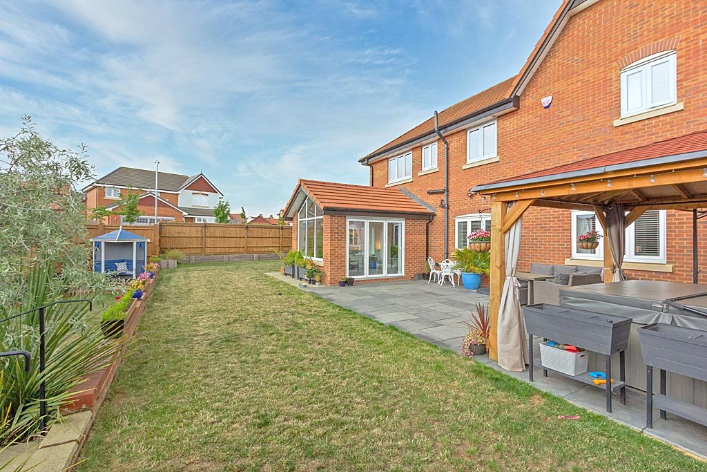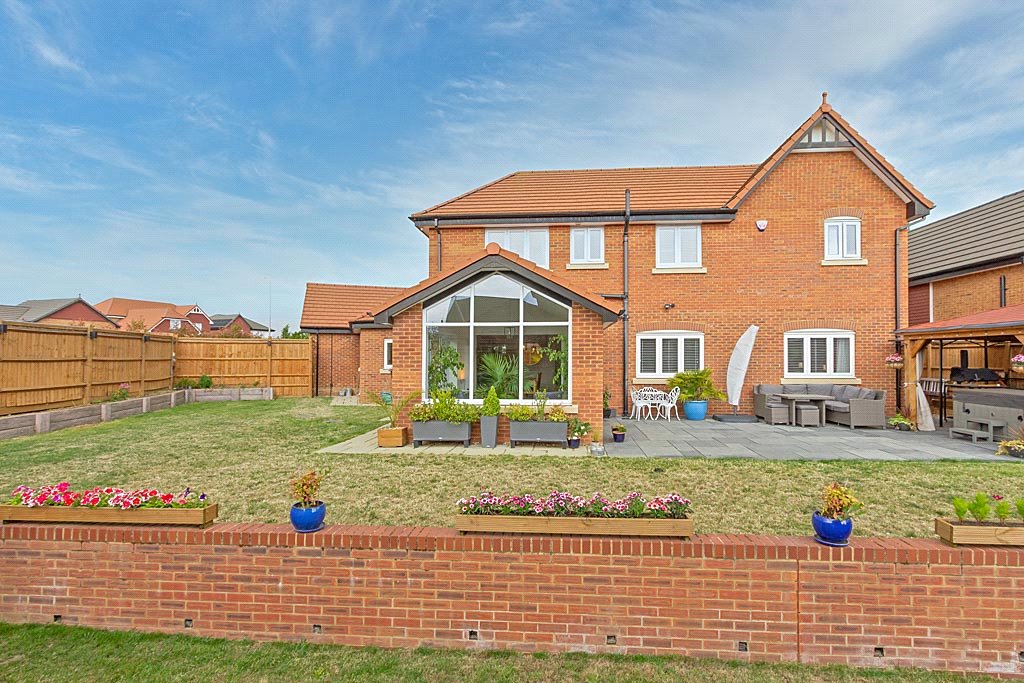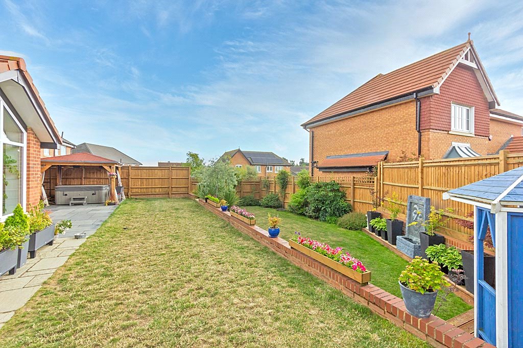 A stunning property located in the sought-after Kingsborough Manor development. This executive detached house, as part of the final "signature collection" phase of the development, offers a luxurious living experience with many enhanced features such as multi-room sound system, Aqualisa digital showers and integral garden room. It has the added benefit of 6 years remaining on the NHBC warranty. Upon entering the house, you will be greeted by a spacious open plan layout, seamlessly combining the kitchen, dining area, family area and garden room. This design creates a modern and sociable space, perfect for entertaining or enjoying quality time with family. The separate utility room provides additional storage and convenient access to the garage. The dual aspect living room provides a comfortable and cozy setting for relaxation and leisure activities. Upstairs the master bedroom features a generously sized en-suite bathroom. Additionally, there are three more double bedrooms, and a family bathroom. Both en-suite and family bathrooms are fully tiled with separate bath and digital shower. Externally, the property features a double garage with fully tiled floor, water softener, electric roller door and loft storage along with a block paved driveway providing ample parking space. The rear garden has been meticulously maintained, with a delightful outdoor patio area for relaxation or entertaining and includes a 5 seater hot tub, gazebo and arbour. Kingsborough Manor has a local wildlife park, ideal for those with dogs and the Isle of Sheppey is renowned for its abundance of wildlife with some wonderful coastal walks. The development is close to Eastchurch and Minster with its local shops and beach walks. Sheerness is approximately 5 miles away and has a railway station and a good selection of larger supermarkets. London is 1 hour away by car via the M2 and A249.
