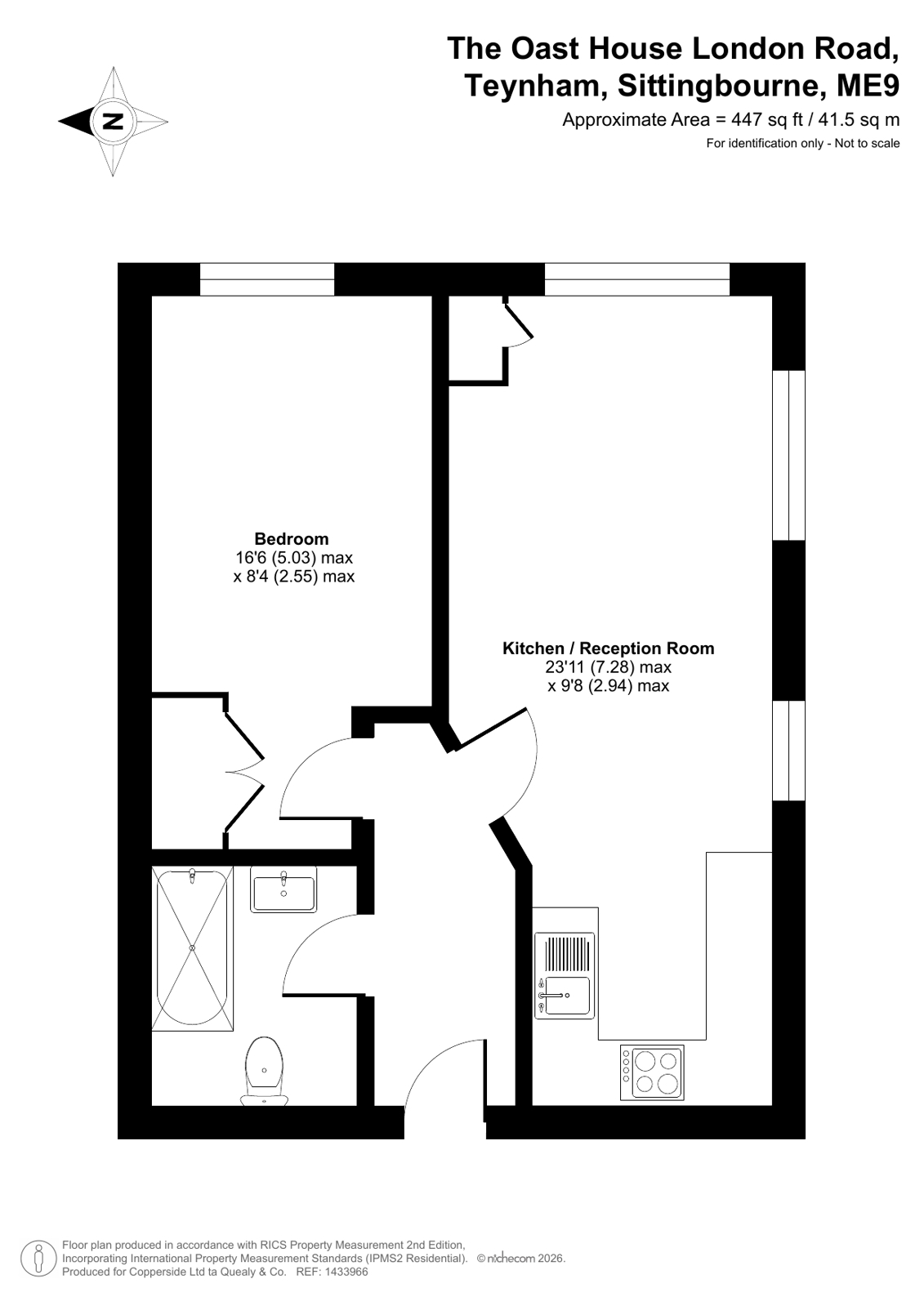 This well-proportioned one-bedroom apartment offers a practical layout and generous living space, ideal for first-time buyers, investors, or those looking to downsize. The property features a spacious open-plan kitchen/reception room, extending over 23 feet, providing a bright and versatile area for both living and dining. The kitchen is neatly arranged with good worktop space and storage. The double bedroom is of a good size, offering comfortable accommodation with built in wardrobes and space for additional furniture. A bathroom is fitted with a bath, wash basin, and WC. The apartment is accessed via a central hallway, giving a sense of separation between living and sleeping areas, and enhancing the overall flow of the property. With an approximate total area of 447 sq ft (41.5 sq m), this home makes an excellent and affordable option in a convenient location. Situated in Teynham, the property benefits from access to local amenities and transport links.