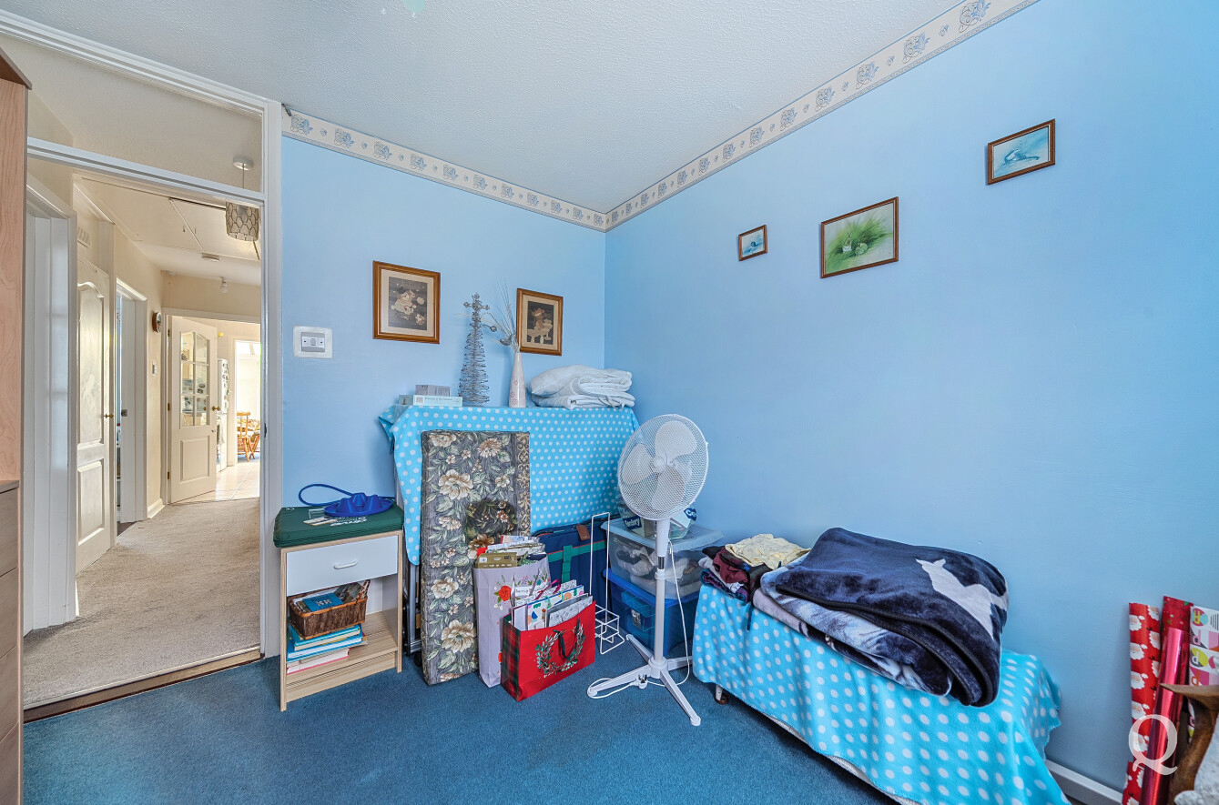 There are two bedrooms, including a well-proportioned main bedroom with fitted storage, alongside a second bedroom ideal as a guest room, study or hobby space. The shower room is fitted with a walk-in shower, WC and wash hand basin.