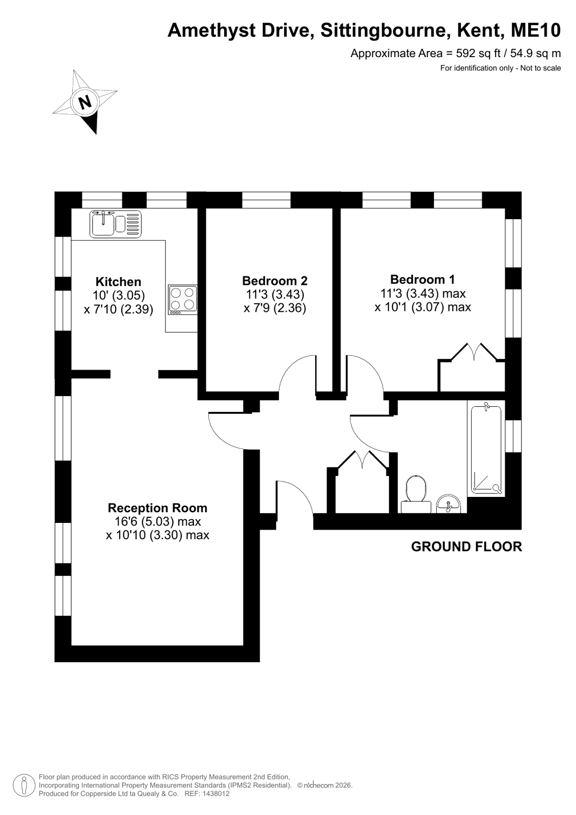 This well-presented ground floor, leasehold property offers a comfortable and practical layout, making it an excellent choice for first-time buyers, downsizers, or investors. The property features a spacious and light-filled reception room, providing a versatile living area with plenty of space for both relaxing and dining. A separate kitchen is conveniently positioned and offers a functional layout with good storage and worktop space. There are two well-proportioned bedrooms, including a generous main bedroom and a second bedroom that would work equally well as a guest room, home office, or nursery. A family bathroom completes the accommodation, fitted with a bath, WC, and basin. Further benefits include allocated parking and the ease of ground floor living, offering convenient access without the need for stairs. The property is ideally situated in a popular residential area of Sittingbourne, offering excellent access to a range of local amenities including shops, supermarkets, schools, and leisure facilities. Sittingbourne town centre is within easy reach, providing a variety of high street retailers, cafes, and restaurants, as well as a mainline railway station with regular services to London, making it ideal for commuters. For those travelling by car, there is particularly easy access to the A249, which links directly to the M2 and M20, providing convenient routes towards London, the coast, and surrounding towns. The area also benefits from nearby green spaces and countryside, offering opportunities for walking and outdoor activities.