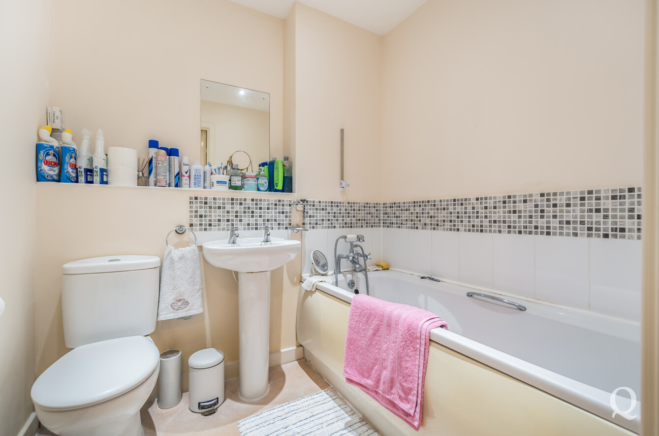 There are two well-proportioned bedrooms, with the master bedroom benefitting from its own wet room, adding a touch of convenience and privacy. The second bedroom is ideal as a guest room, home office, or additional bedroom. A separate family bathroom fitted with a white suite completes the internal accommodation.