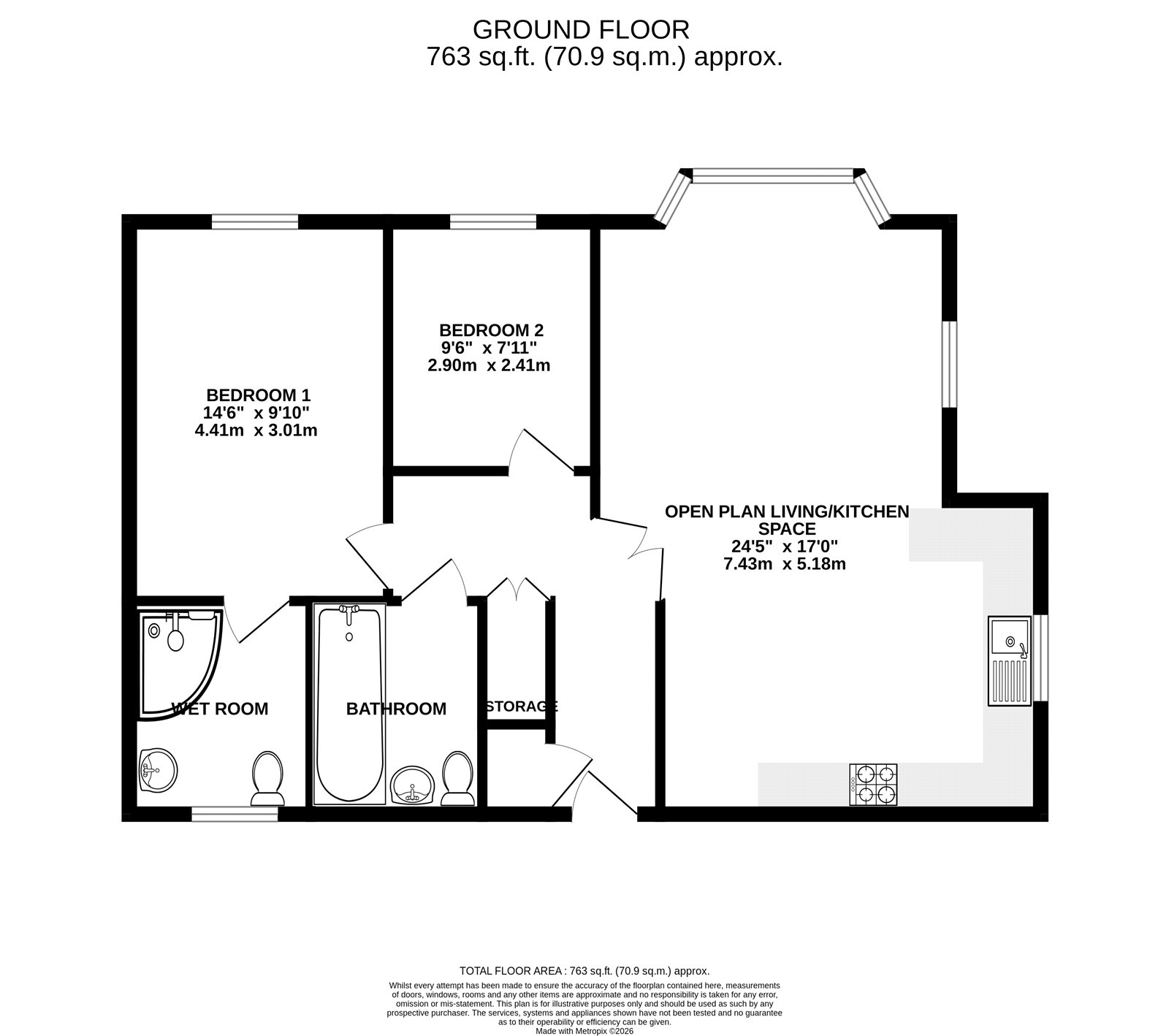 GROUND FLOOR Apartment with 2-Bedrooms & 2-Bathrooms! Bay-fronted OPEN PLAN Living & Master Bedroom with WET ROOM | Off-Street PARKING