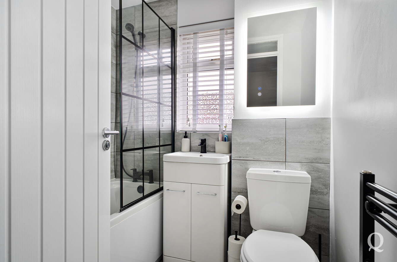 Upstairs, there are two well-proportioned bedrooms along with a stylish, modern family bathroom.