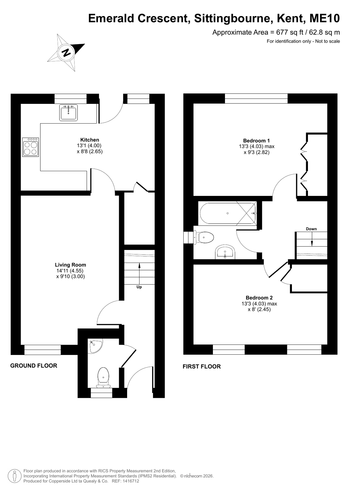 This two-bedroom home, situated on Emerald Crescent, offers a comfortable and contemporary living space ideal for a small family or a couple. Upon entering, you are greeted by a welcoming reception room that is perfect for relaxation and entertaining. Moving from the reception area, the kitchen/breakfast area provides ample space for cooking and has been recently modernised. The ground floor is completed with a WC.