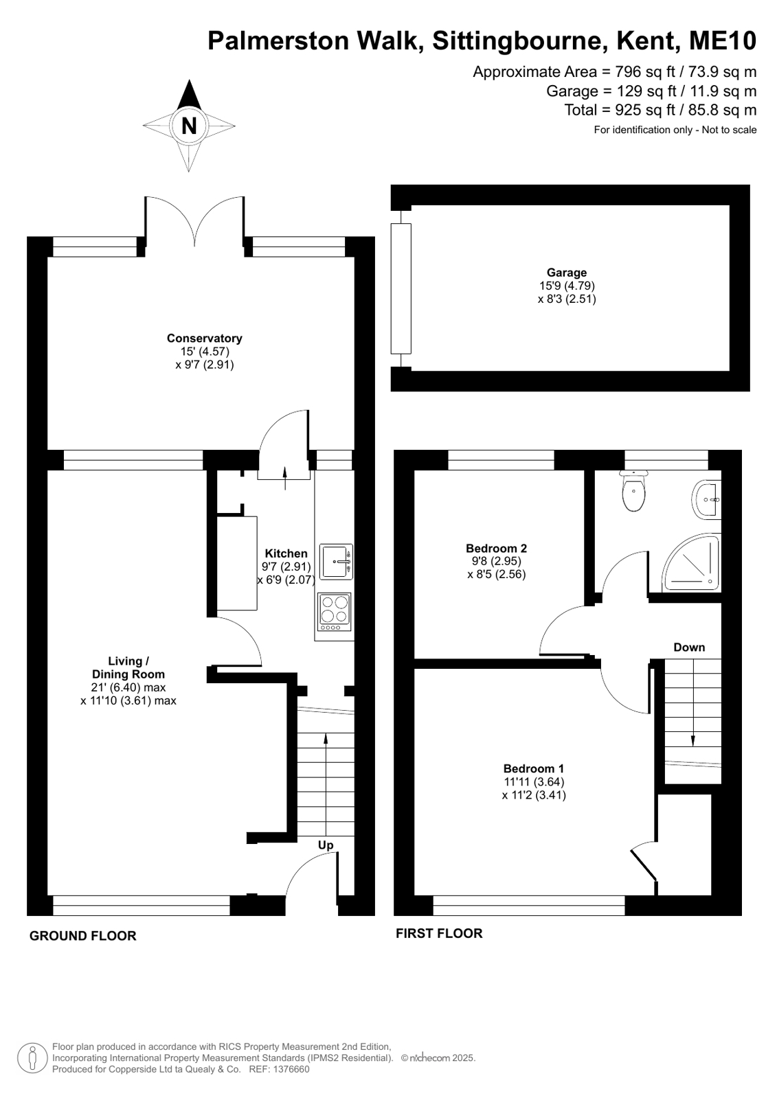 This well-presented mid-terrace house is an ideal first-time buy, offering a comfortable and inviting living space throughout. The ground floor features a spacious open-plan living/dining room, perfect for relaxing or entertaining, along with a recently refitted kitchen that leads through to a bright conservatory, adding valuable extra living space. Upstairs, there are two generously sized double bedrooms and a modern bathroom. Outside, the property boasts a well-maintained garden, while a garage en bloc and an allocated parking space provide convenient storage and parking solutions. Ready to move straight into, this home offers great value and excellent potential for its new owners. Palmerston Walk is situated on the popular Vincent Park Estate with a primary school and local parade of shops close by. Sittingbourne town centre lies around 1.5 miles away which offers general shopping facilities and a mainline railway station with High Speed links into London.
