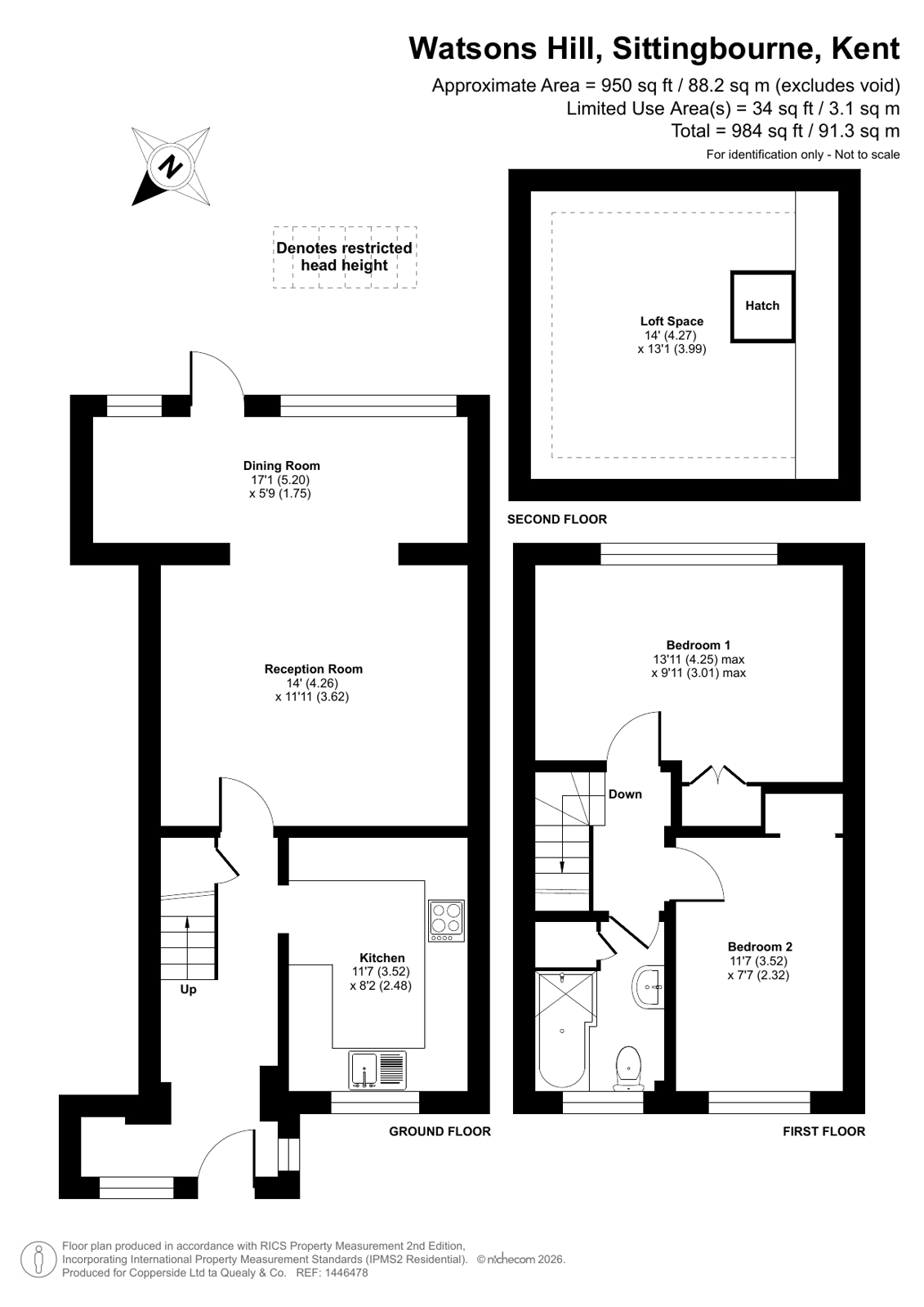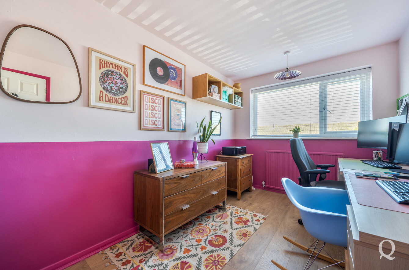 Upstairs, the first floor comprises two well-proportioned bedrooms and a contemporary family bathroom. The property further benefits from a useful loft room, offering excellent storage or potential for further use (subject to any necessary consents).