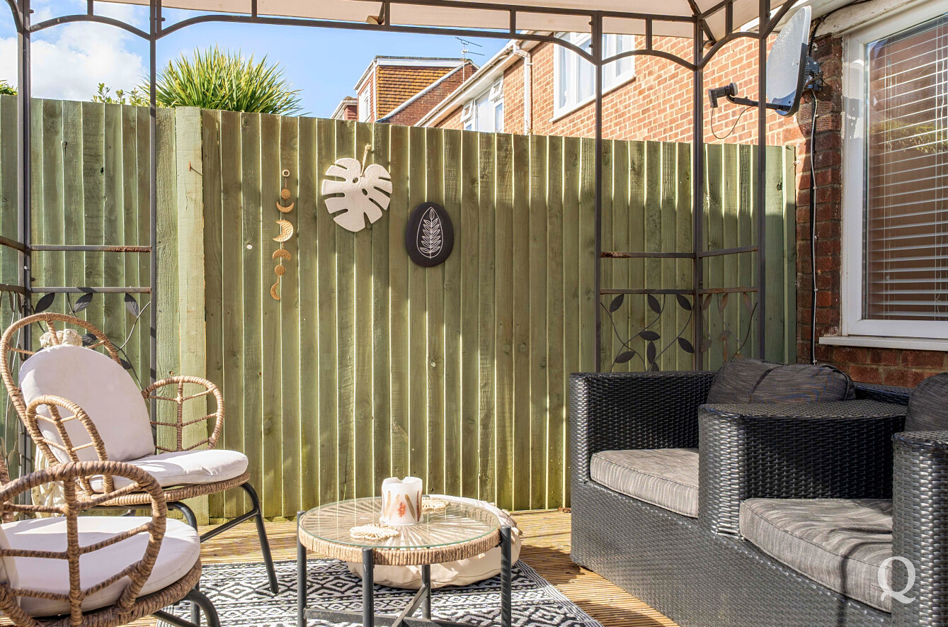 Externally, the rear garden is a real highlight—thoughtfully designed with a raised decked seating area complete with a gazebo, creating an ideal setting for outdoor dining and entertaining. The remainder of the garden is laid to lawn with established planting, providing a balance of usability and greenery.