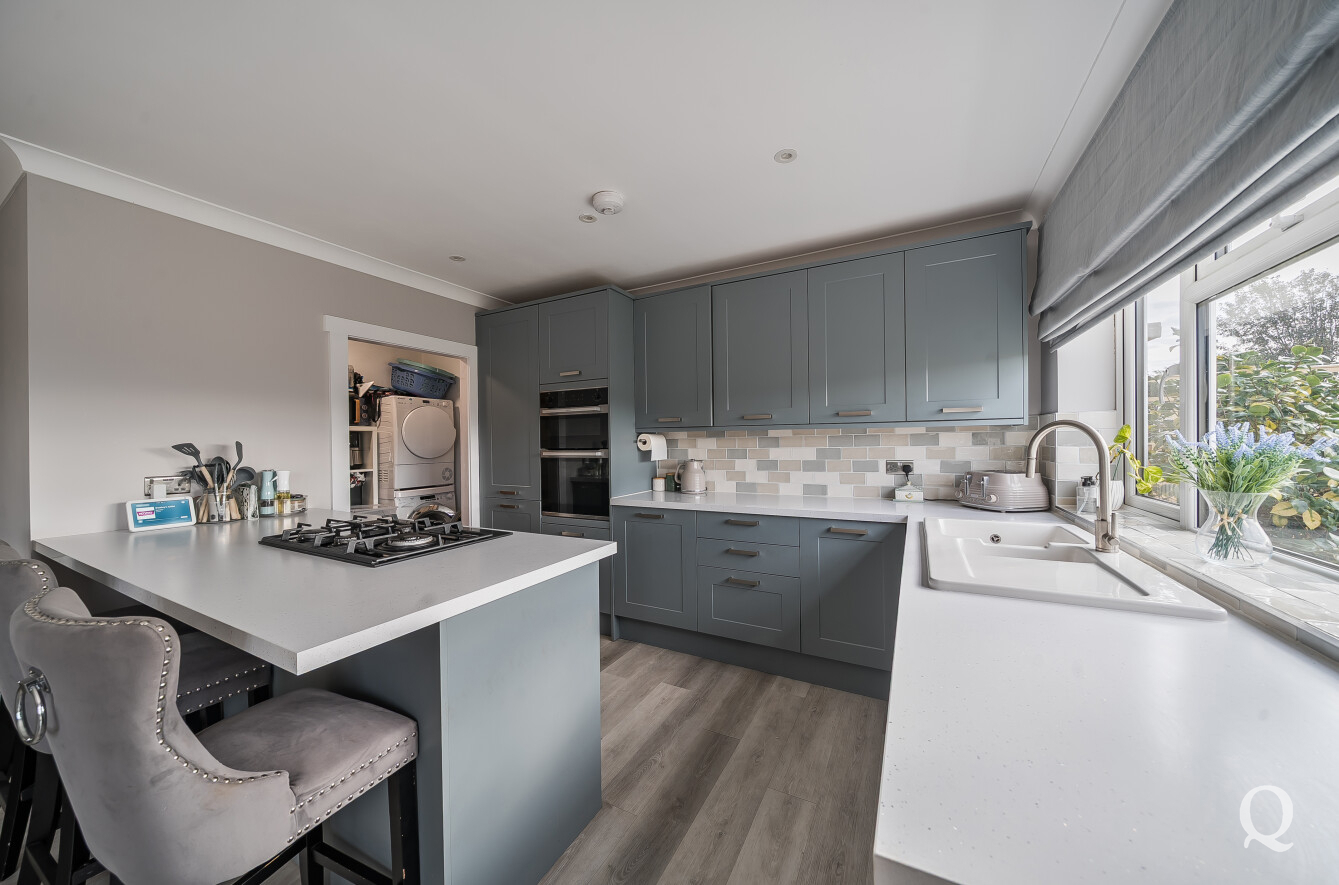 Offered with NO CHAIN and positioned along Keycol Hill in Sittingbourne, this well-presented three-bedroom detached bungalow offers generous accommodation and is perfect for those seeking comfortable single-storey living. The property has been well maintained throughout with a spacious open-plan kitchen and reception room forming the heart of the home. Offered with an inviting and versatile area ideal for both everyday living and entertaining, the space is filled with natural light and enjoys direct access to the garden. A separate utility room adds practicality, while a dedicated office provides an excellent space for those working from home or needing a quiet study area.