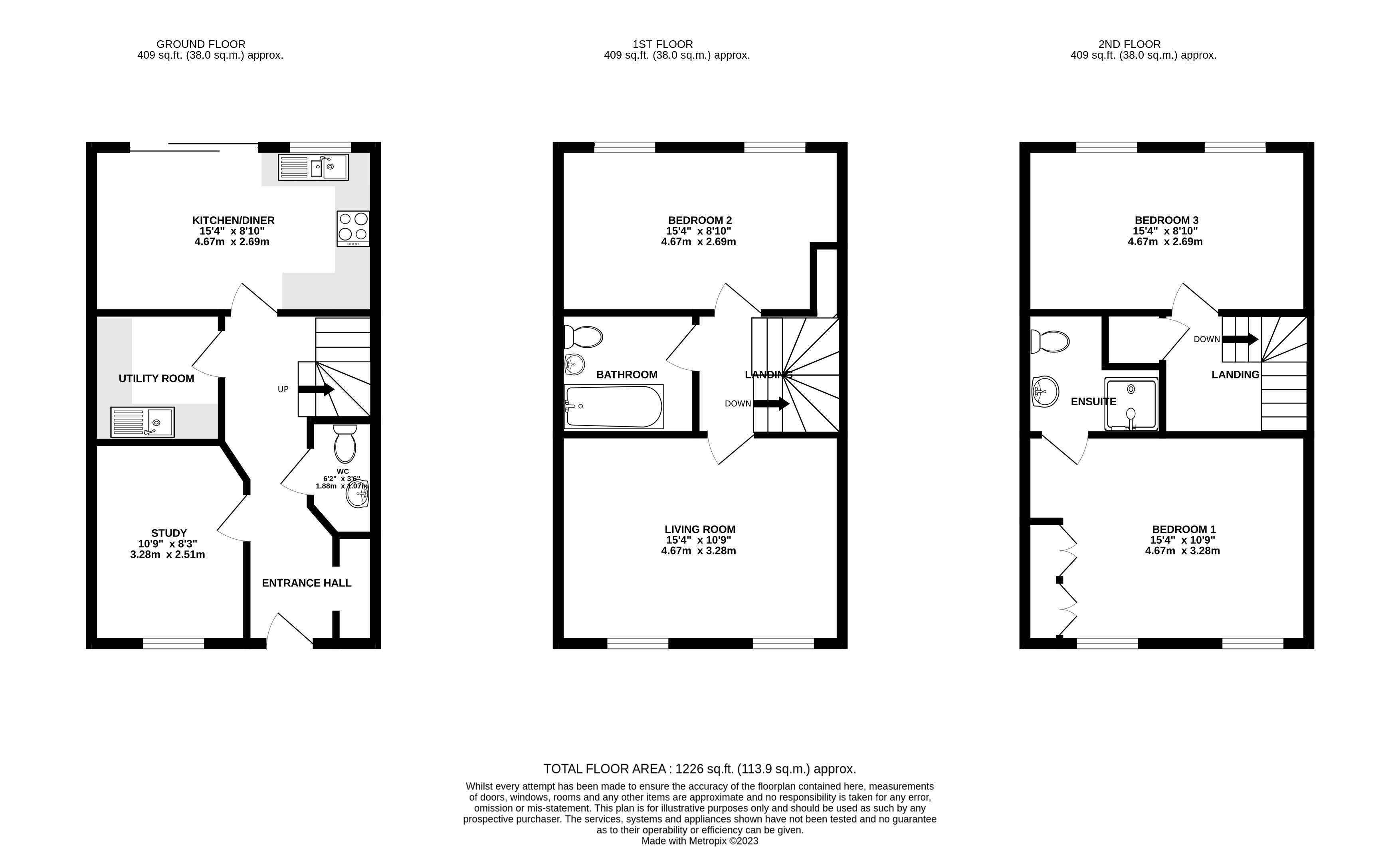 This stunning detached townhouse is nestled in the sought-after Sonora Fields development and is being sold with the benefit of having no onward chain. Upon entering, you'll immediately appreciate the expansive layout of this property. The ground floor encompasses a generously sized kitchen/diner, and adjacent to this is a utility room, providing added convenience. Additionally, a separate study offers a quiet space for work or creative pursuits, while a convenient WC completes this level. Ascending to the first floor, you'll find a comfortable living room, the family bathroom and the second bedroom providing ample accommodation for guests or family members. Continuing to the second floor, you'll discover the master bedroom complete with an ensuite shower room for added convenience. Another double bedroom, perfect for family members or visitors, completes this level. Externally there is an enclosed rear garden along with a garage which ensures your vehicle is conveniently stored. Sonora Fields is ideally located for easy access to the A249/M2 and has a local parade of shops, a commuter coach stop, a primary school close by at Bobbing and Sittingbourne town centre is only about 1.5 miles away which offers a wider range of shopping facilities and a mainline train station with regular High Speed services to London.