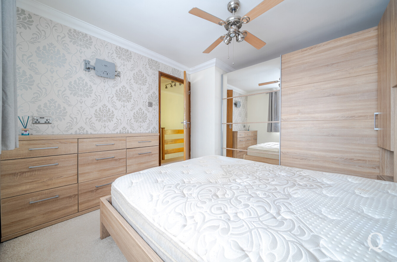 To the first floor, the property offers three well-proportioned bedrooms, including two generous doubles and a good-sized third bedroom, ideal as a nursery, home office, or guest room. The accommodation is completed by a family bathroom fitted with a white suite.
