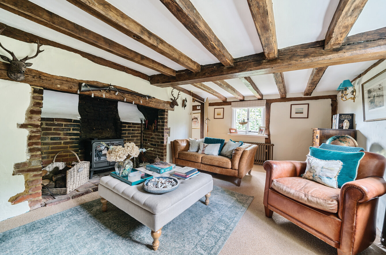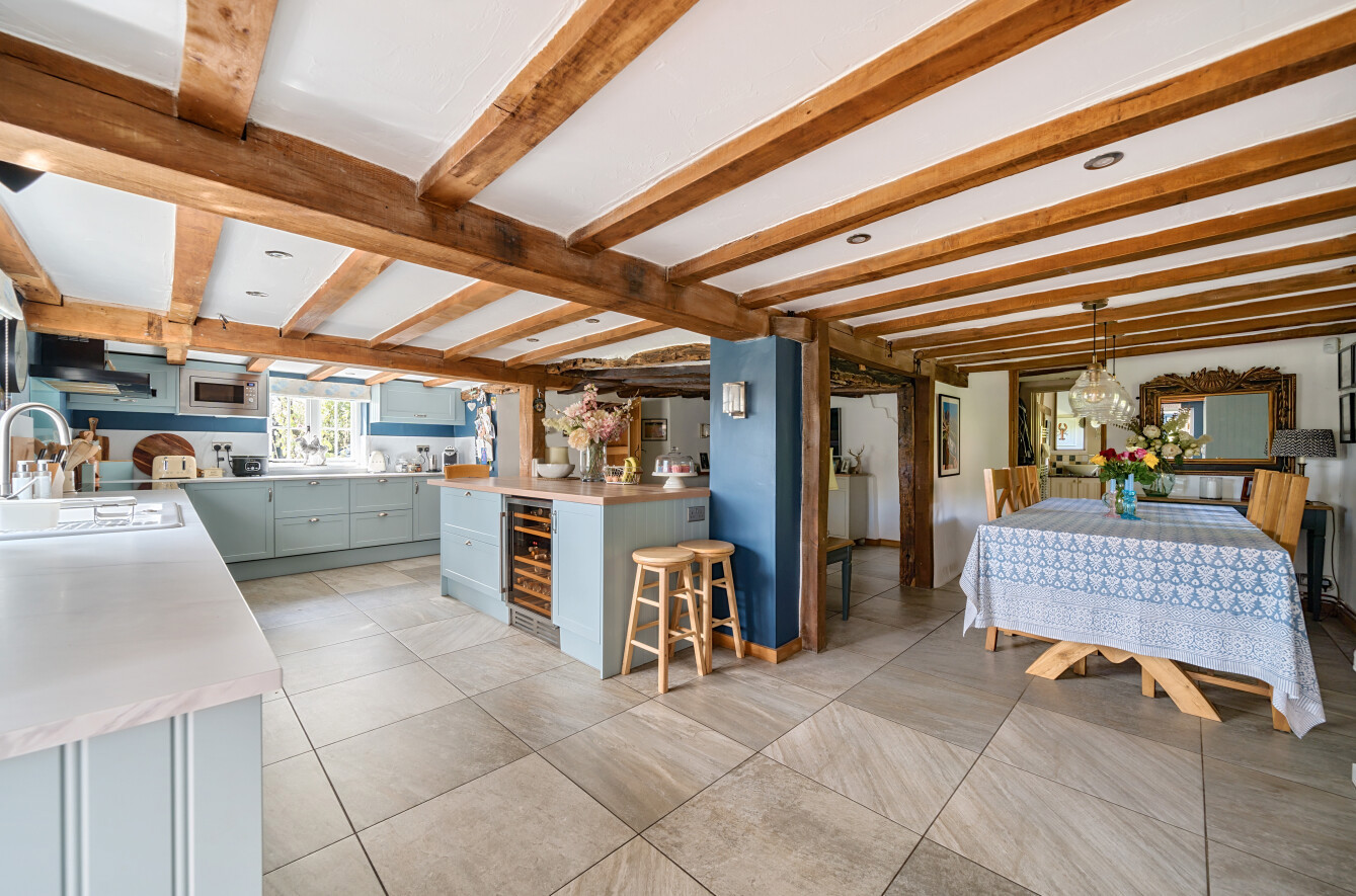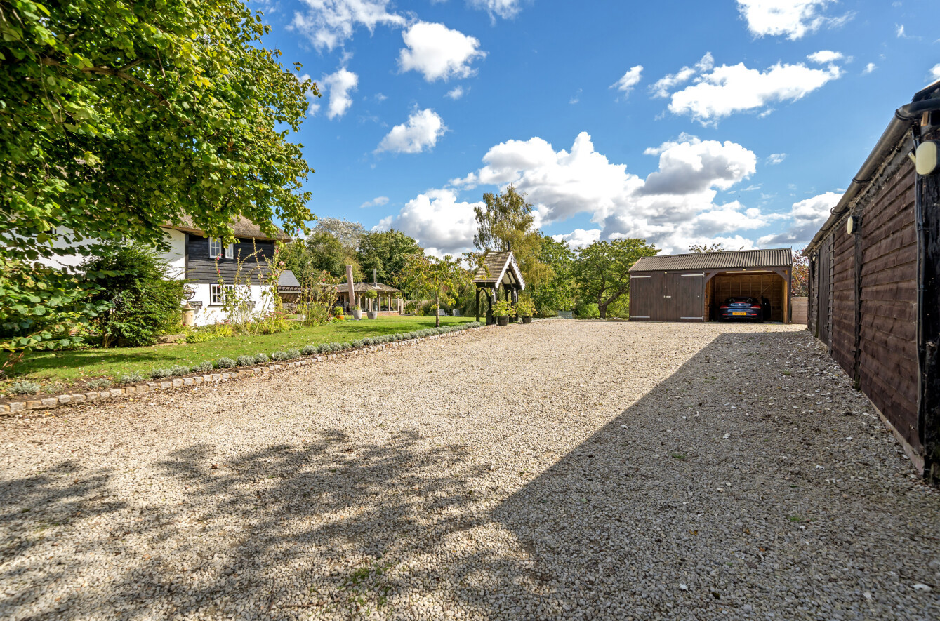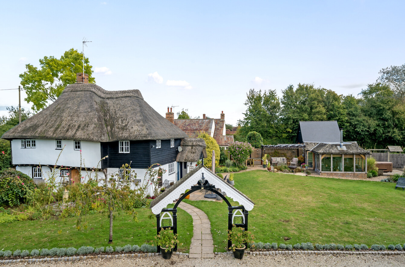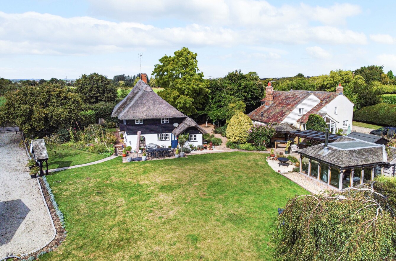 This charming detached thatched cottage sits on a generous plot and is sympathetically presented throughout, retaining a wealth of original character features including an impressive inglenook fireplace and exposed beams. The main house offers well-proportioned and versatile accommodation, with a welcoming open-plan kitchen/dining room featuring a Rangemaster gas stove/oven, a separate reception room, and a ground floor shower room. On the first floor there are three comfortable bedrooms along with a family bathroom, while the second floor provides a further bedroom or hobby room tucked neatly into the eaves. Outside, the property is complemented by a range of useful outbuildings, including a beautiful oak-framed summerhouse, three studios each with their own shower rooms, garages and a utility room. The property is surrounded by large gardens and benefits from excellent parking, all enjoying far-reaching views across the surrounding countryside. Cellar Hill is located in a Conservation Area on the southern outskirts of Teynham but falls within the parish of Lynsted. There is a choice of local shopping facilities, a primary school and mainline railway station in Teynham. A wider choice of shopping facilities and secondary schools is provided in Faversham and Sittingbourne, both about 4 miles away and which also offer excellent links to the Channel Tunnel and London St Pancras International.