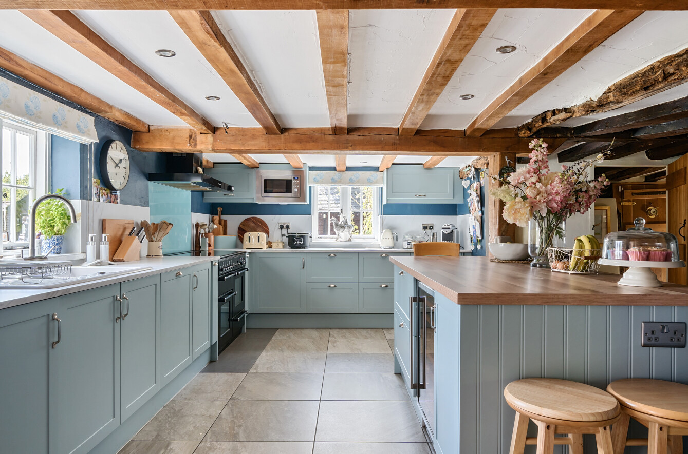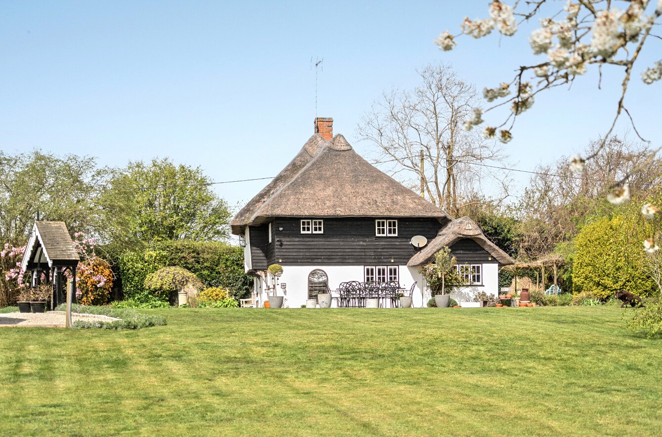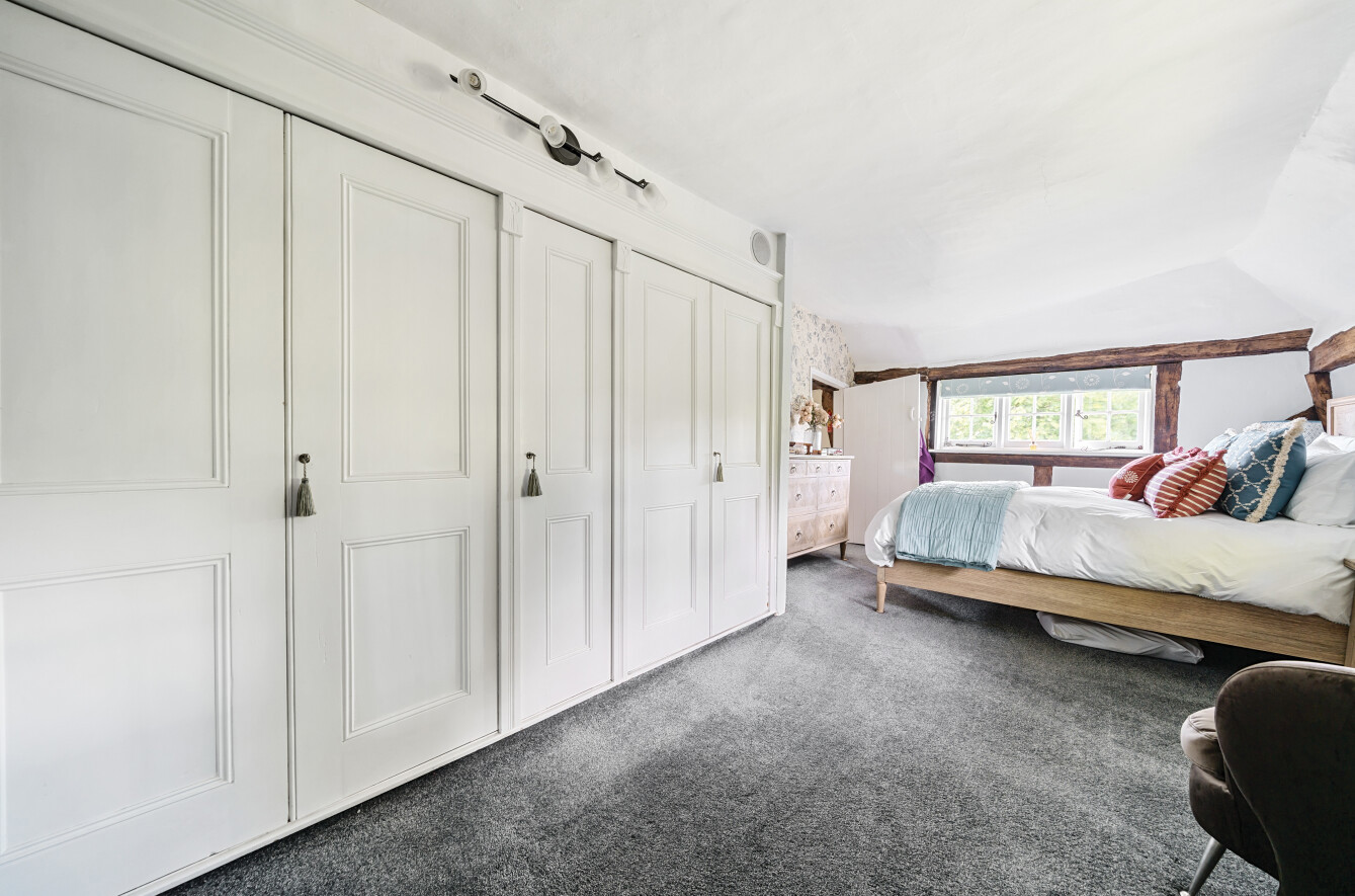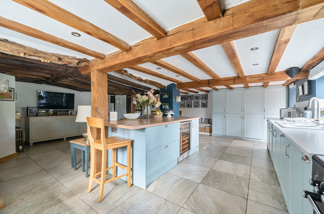 This charming detached thatched cottage sits on a generous plot and is sympathetically presented throughout, retaining a wealth of original character features including an impressive inglenook fireplace and exposed beams. The main house offers well-proportioned and versatile accommodation, with a welcoming open-plan kitchen/dining room featuring a Rangemaster gas stove/oven, a separate reception room, and a ground floor shower room. On the first floor there are three comfortable bedrooms along with a family bathroom, while the second floor provides a further bedroom or hobby room tucked neatly into the eaves. Outside, the property is complemented by a range of useful outbuildings, including a beautiful oak-framed summerhouse, three studios each with their own shower rooms, garages and a utility room. The property is surrounded by large gardens and benefits from excellent parking, all enjoying far-reaching views across the surrounding countryside. Cellar Hill is located in a Conservation Area on the southern outskirts of Teynham but falls within the parish of Lynsted. There is a choice of local shopping facilities, a primary school and mainline railway station in Teynham. A wider choice of shopping facilities and secondary schools is provided in Faversham and Sittingbourne, both about 4 miles away and which also offer excellent links to the Channel Tunnel and London St Pancras International.
