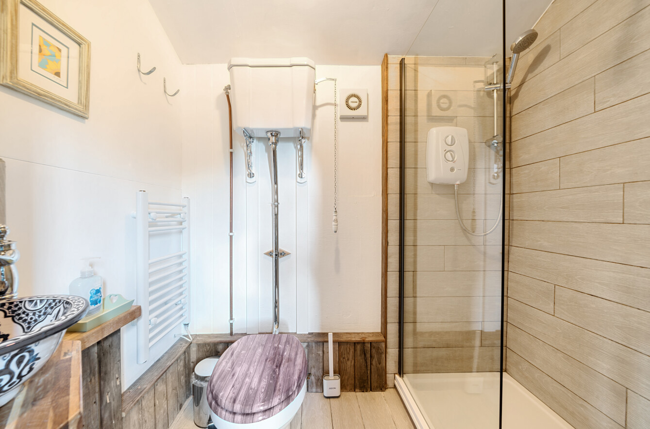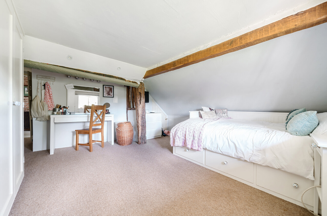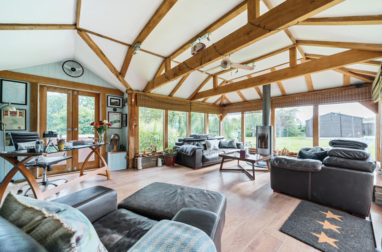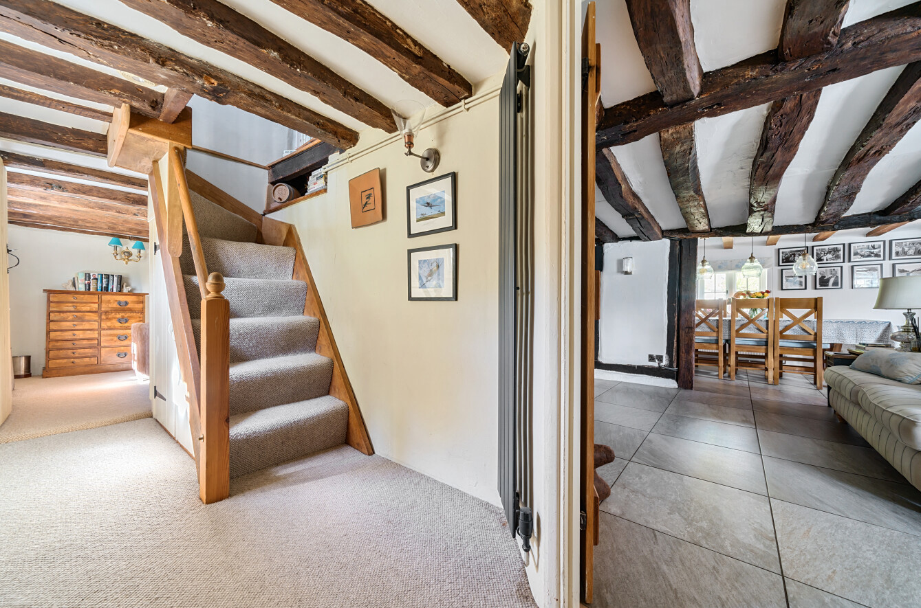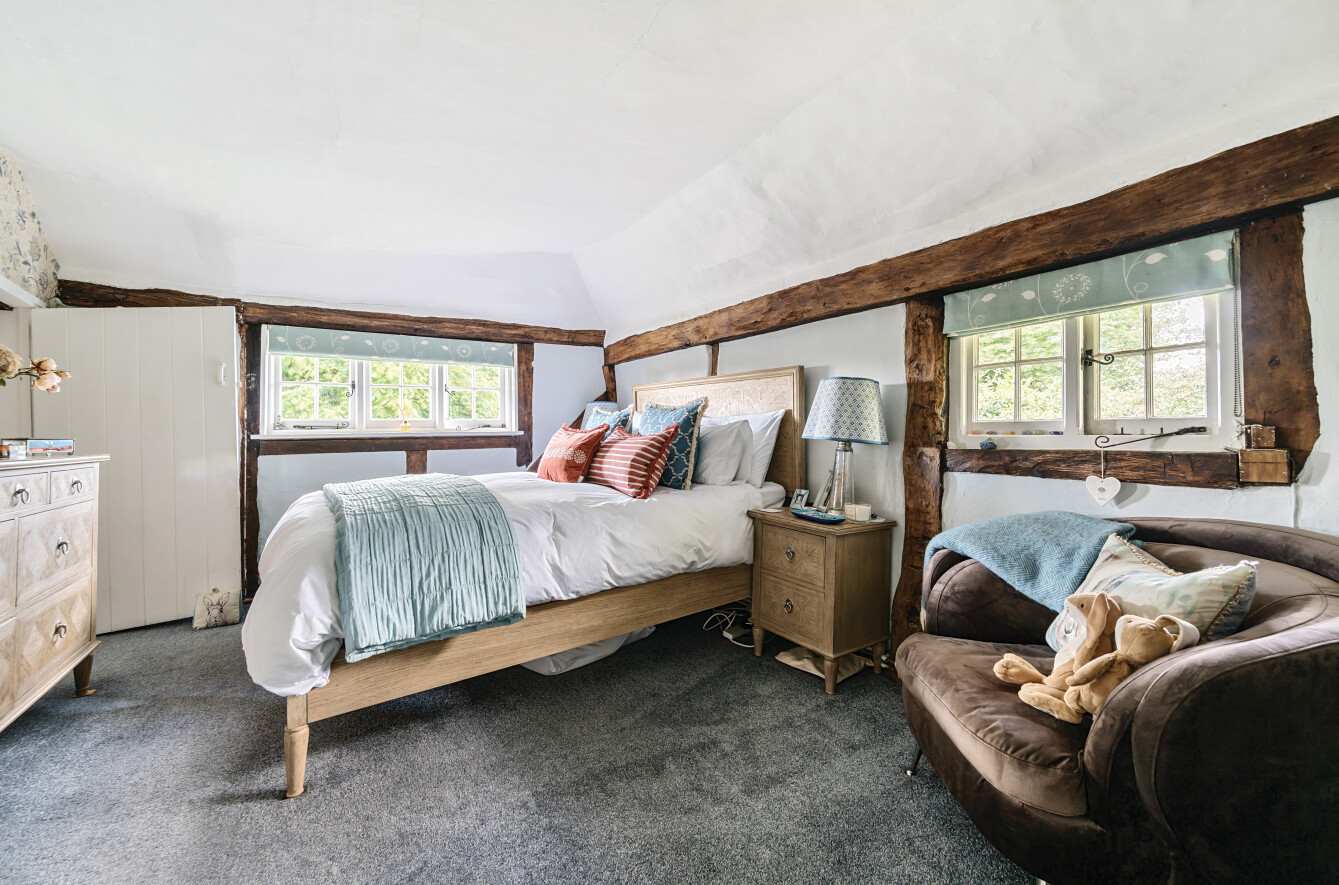 This charming detached thatched cottage sits on a generous plot and is sympathetically presented throughout, retaining a wealth of original character features including an impressive inglenook fireplace and exposed beams. The main house offers well-proportioned and versatile accommodation, with a welcoming open-plan kitchen/dining room featuring a Rangemaster gas stove/oven, a separate reception room, and a ground floor shower room. On the first floor there are three comfortable bedrooms along with a family bathroom, while the second floor provides a further bedroom or hobby room tucked neatly into the eaves. Outside, the property is complemented by a range of useful outbuildings, including a beautiful oak-framed summerhouse, three studios each with their own shower rooms, garages and a utility room. The property is surrounded by large gardens and benefits from excellent parking, all enjoying far-reaching views across the surrounding countryside. Cellar Hill is located in a Conservation Area on the southern outskirts of Teynham but falls within the parish of Lynsted. There is a choice of local shopping facilities, a primary school and mainline railway station in Teynham. A wider choice of shopping facilities and secondary schools is provided in Faversham and Sittingbourne, both about 4 miles away and which also offer excellent links to the Channel Tunnel and London St Pancras International.