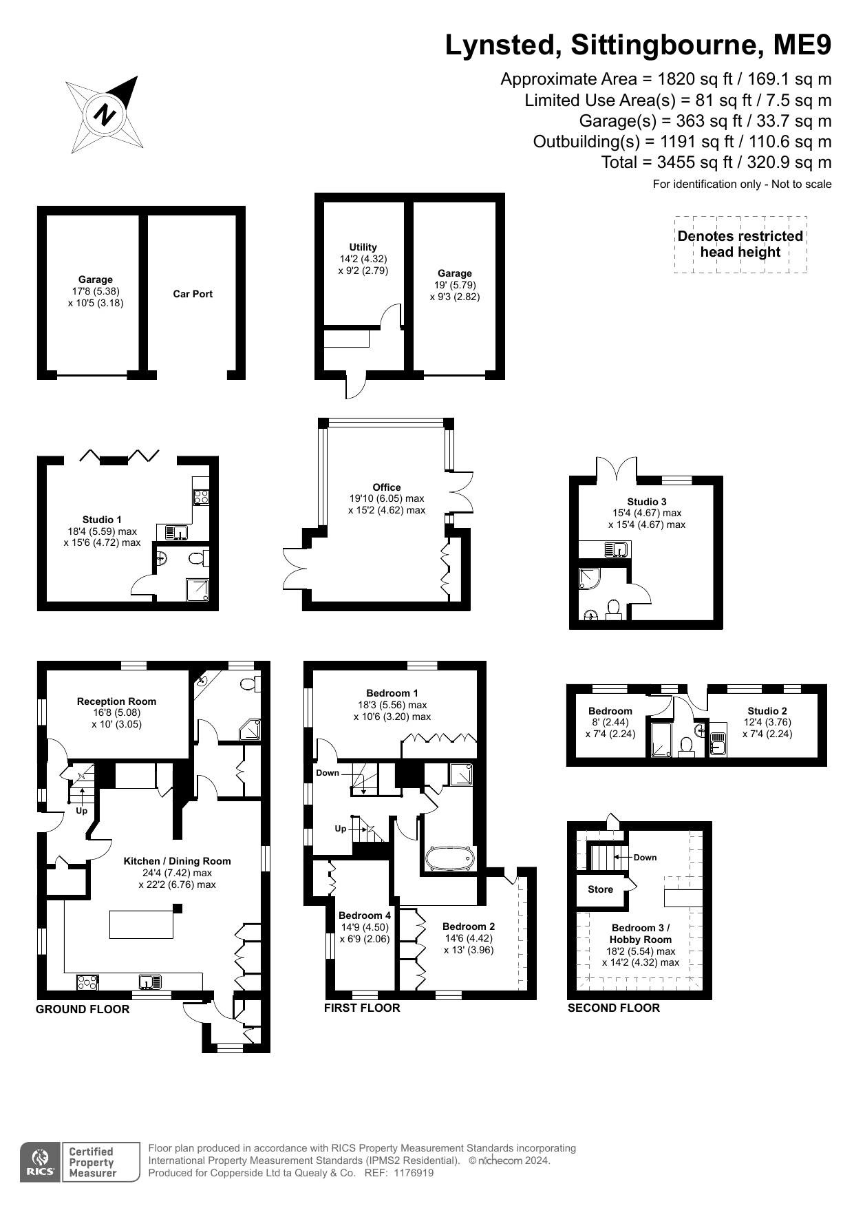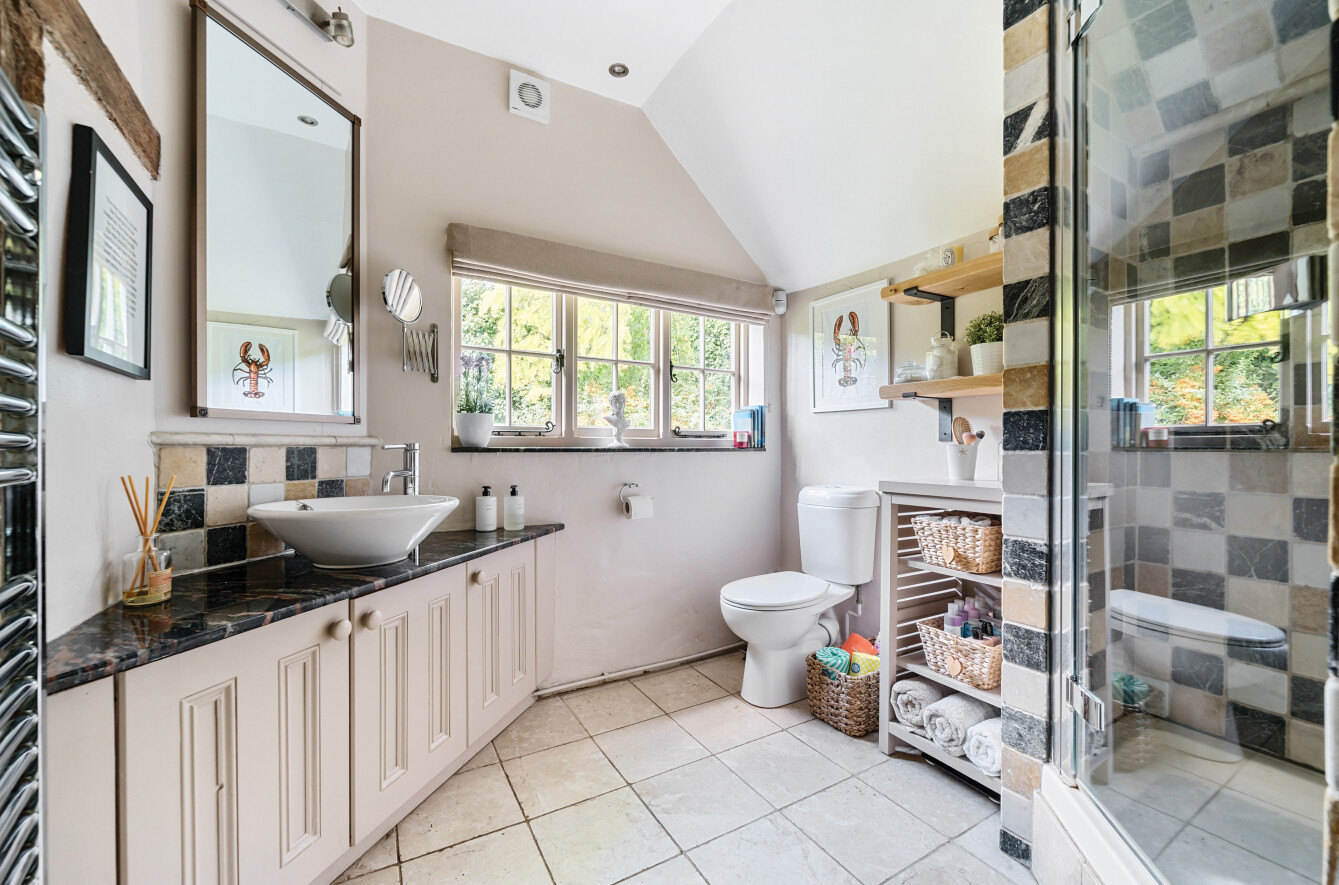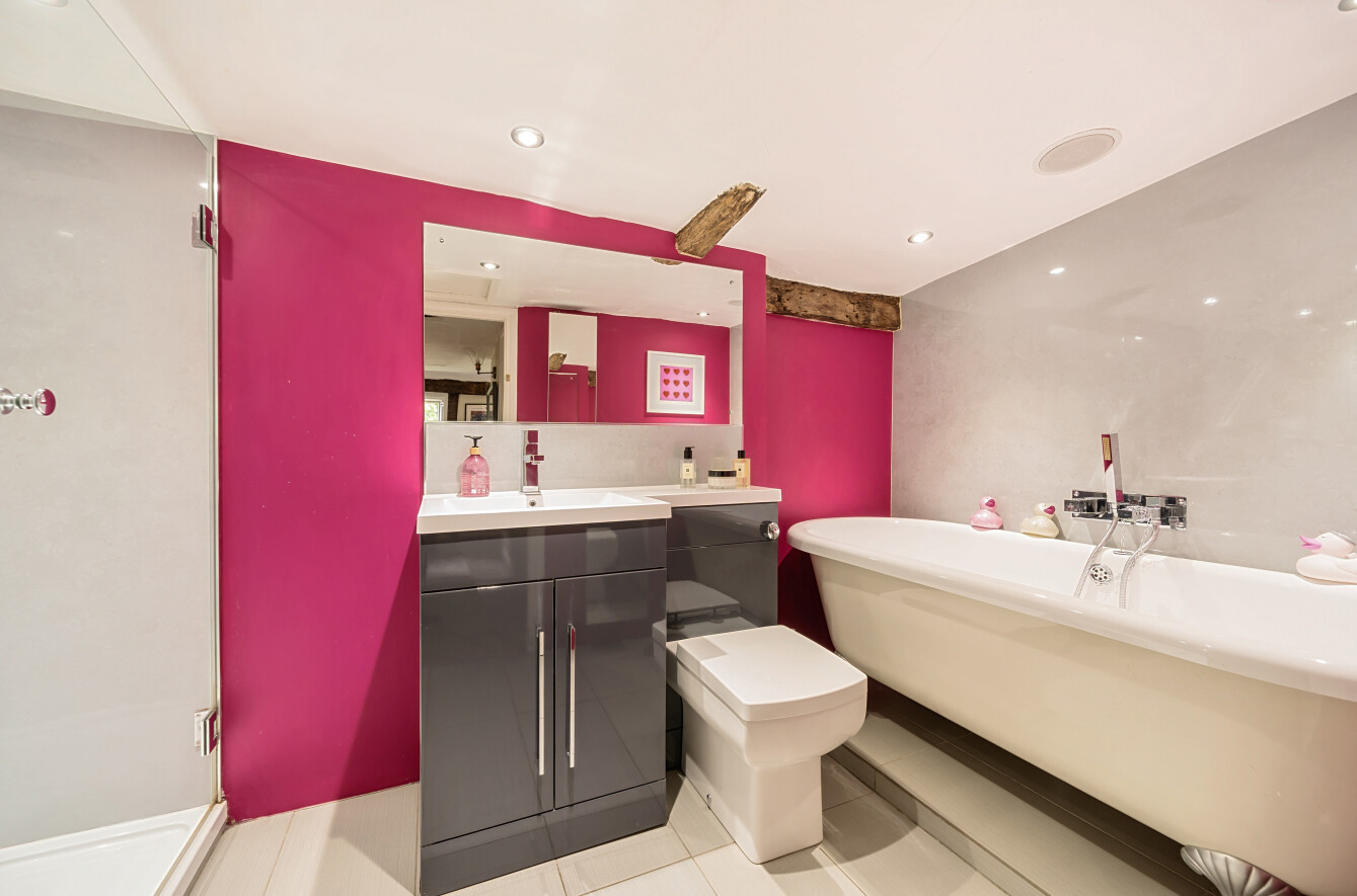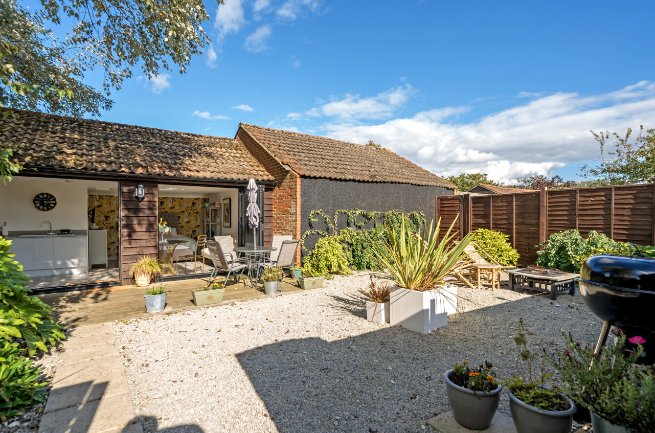 This charming detached thatched cottage sits on a generous plot and is sympathetically presented throughout, retaining a wealth of original character features including an impressive inglenook fireplace and exposed beams. The main house offers well-proportioned and versatile accommodation, with a welcoming open-plan kitchen/dining room featuring a Rangemaster gas stove/oven, a separate reception room, and a ground floor shower room. On the first floor there are three comfortable bedrooms along with a family bathroom, while the second floor provides a further bedroom or hobby room tucked neatly into the eaves. Outside, the property is complemented by a range of useful outbuildings, including a beautiful oak-framed summerhouse, three studios each with their own shower rooms, garages and a utility room. The property is surrounded by large gardens and benefits from excellent parking, all enjoying far-reaching views across the surrounding countryside. Cellar Hill is located in a Conservation Area on the southern outskirts of Teynham but falls within the parish of Lynsted. There is a choice of local shopping facilities, a primary school and mainline railway station in Teynham. A wider choice of shopping facilities and secondary schools is provided in Faversham and Sittingbourne, both about 4 miles away and which also offer excellent links to the Channel Tunnel and London St Pancras International.