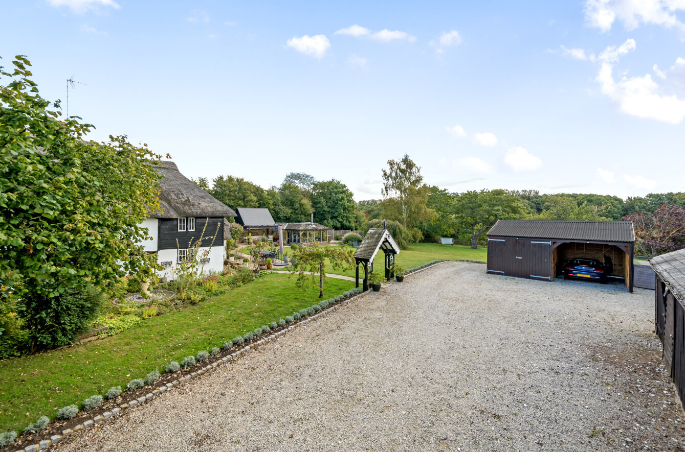 Impressive Period Thatched Cottage | Generous Plot | 3-4 Bedrooms | 2 Bathrooms | Useful Outbuildings/Studios & Oak Framed Summerhouse | Inglenook Fireplace & Exposed Beams | Car Barn & Garages | Excellent Driveway Parking | Far Reaching Countryside Views