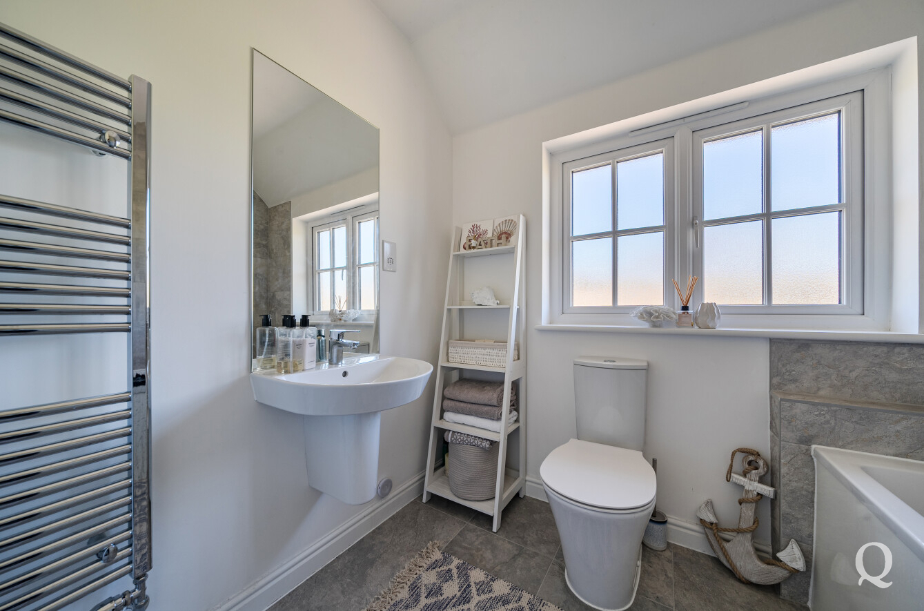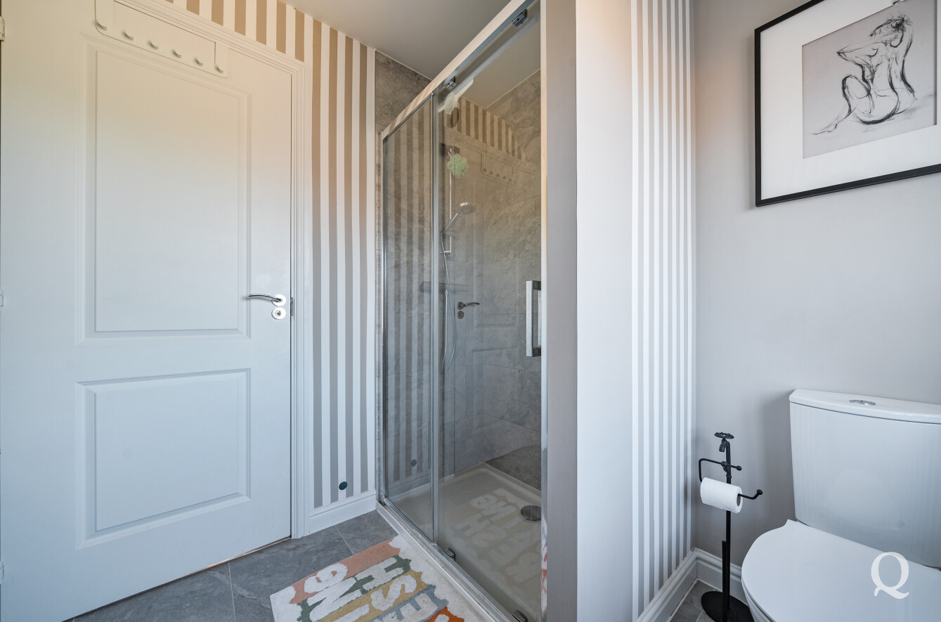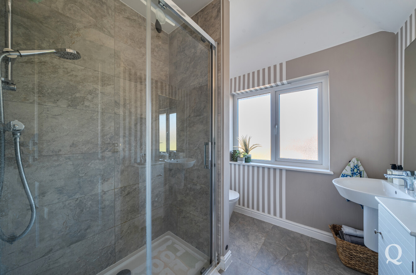Upstairs, the home offers three well-proportioned bedrooms, including a spacious principal bedroom complete with its own en-suite shower room, alongside a modern family bathroom. The layout has been thoughtfully designed to maximise space and natural light throughout.