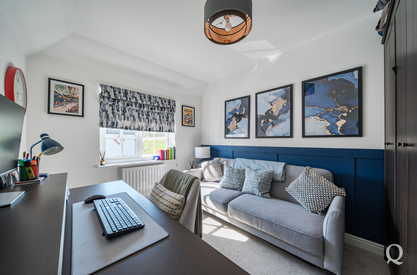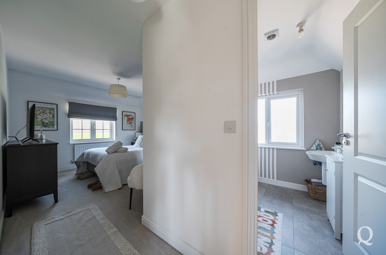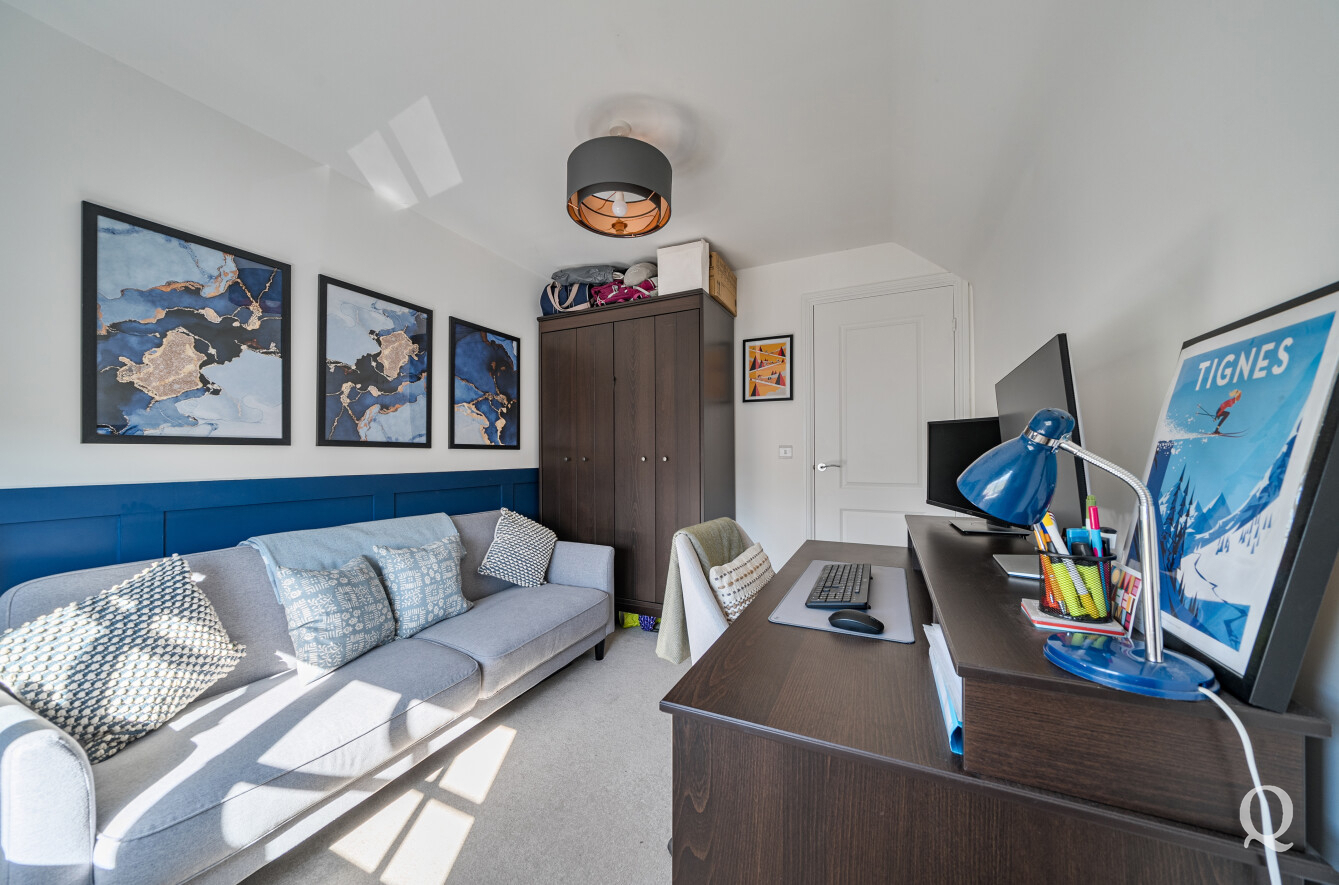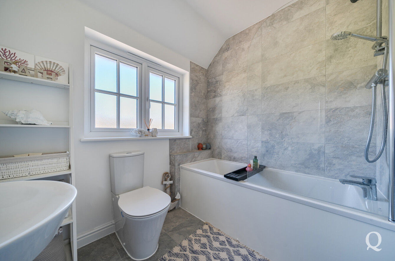 Upstairs, the home offers three well-proportioned bedrooms, including a spacious principal bedroom complete with its own en-suite shower room, alongside a modern family bathroom. The layout has been thoughtfully designed to maximise space and natural light throughout.