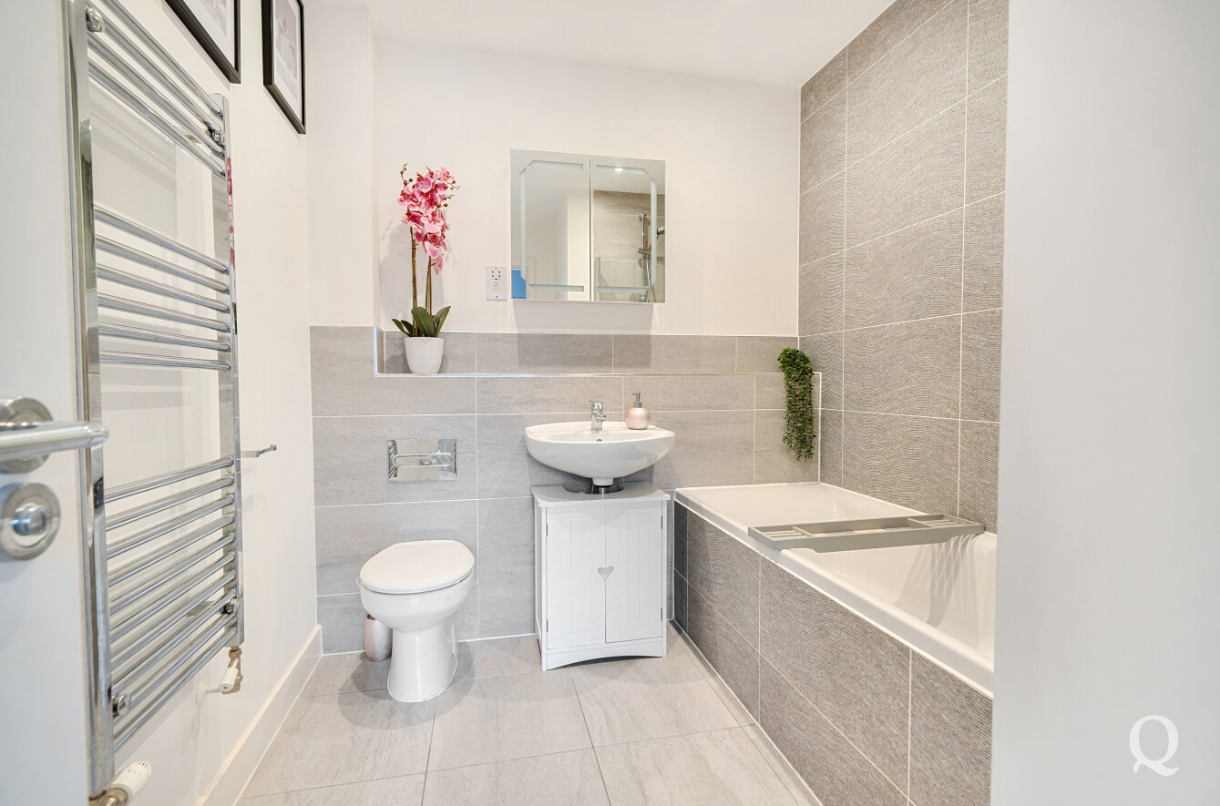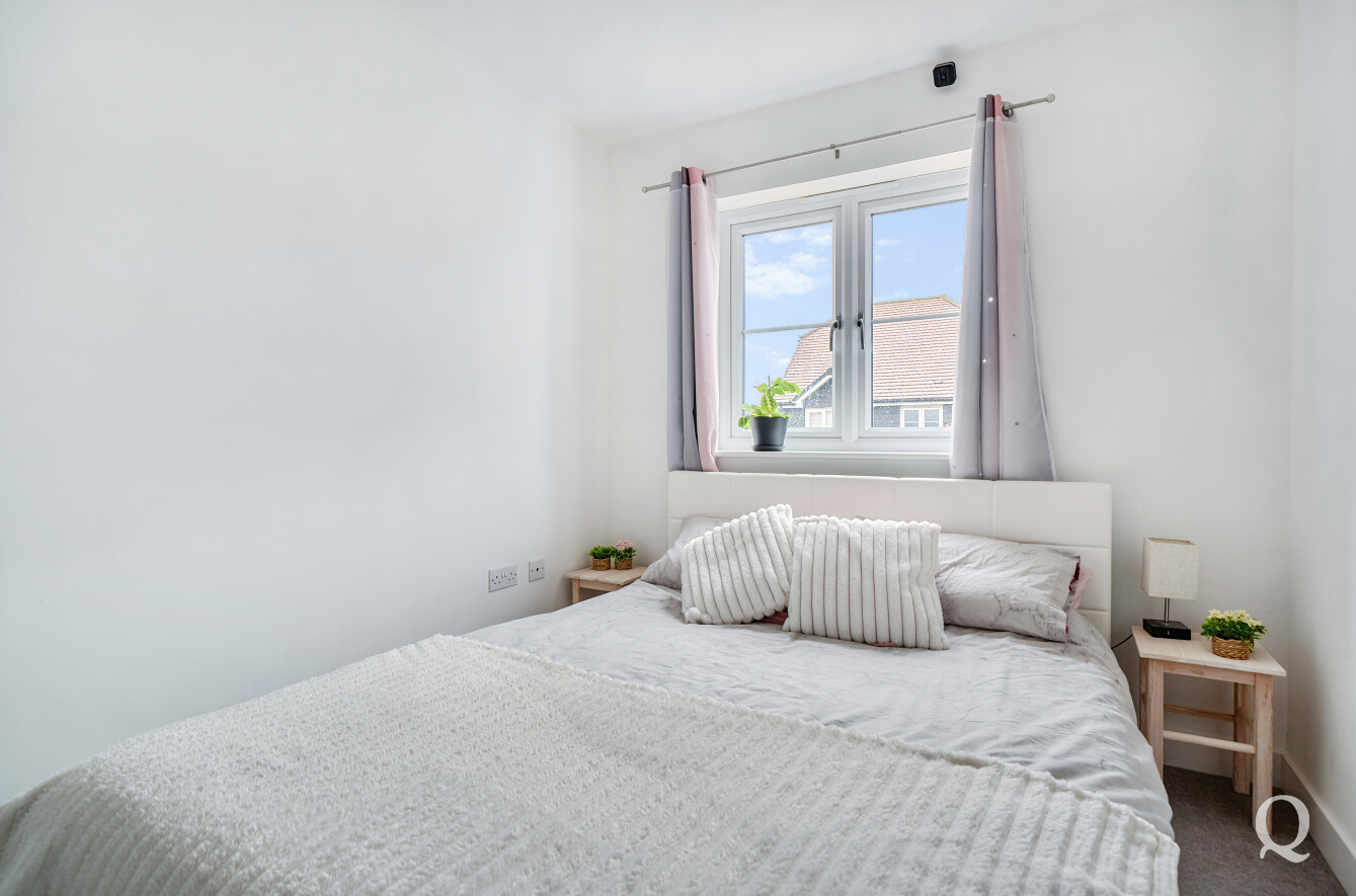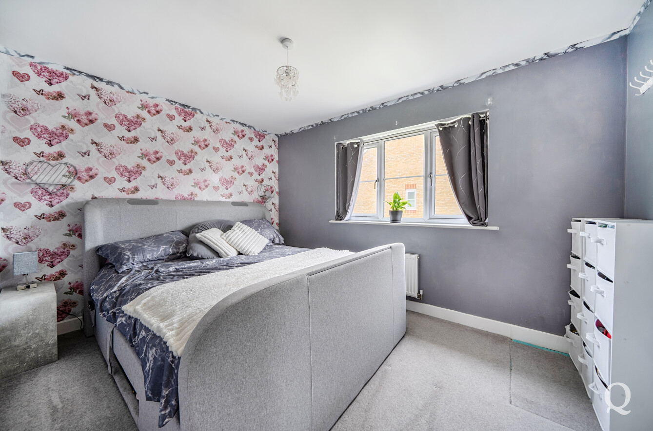 Upstairs, the property continues to impress with three well-proportioned bedrooms, including a generous main bedroom with a modern en-suite shower room. A second double bedroom and a versatile third bedroom—currently benefitting from a walk-in wardrobe area—are served by a well-appointed family bathroom.