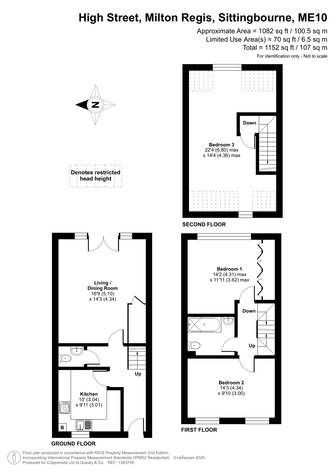 This spacious and modern terraced house is arranged over three well-designed floors, offering plenty of room for comfortable living. The ground floor features a contemporary kitchen, a convenient downstairs WC, and a bright living/dining room that opens up the heart of the home. On the first floor, you’ll find the main bedroom with fitted wardrobes, a second double bedroom, and a stylish family bathroom. The top floor provides an additional generous double bedroom with a study area, ideal as a guest room, home office, or private retreat. Outside, the property boasts an enclosed rear garden with both patio and lawn areas, perfect for relaxing or entertaining. Situated close to Milton High Street, the property has easy access to local shops, amenities, and public transport. The nearby A249 ensures a good connection to major road networks, making commuting a breeze. Milton Recreational Park is just a stone's throw away, offering a great place to walk or unwind.