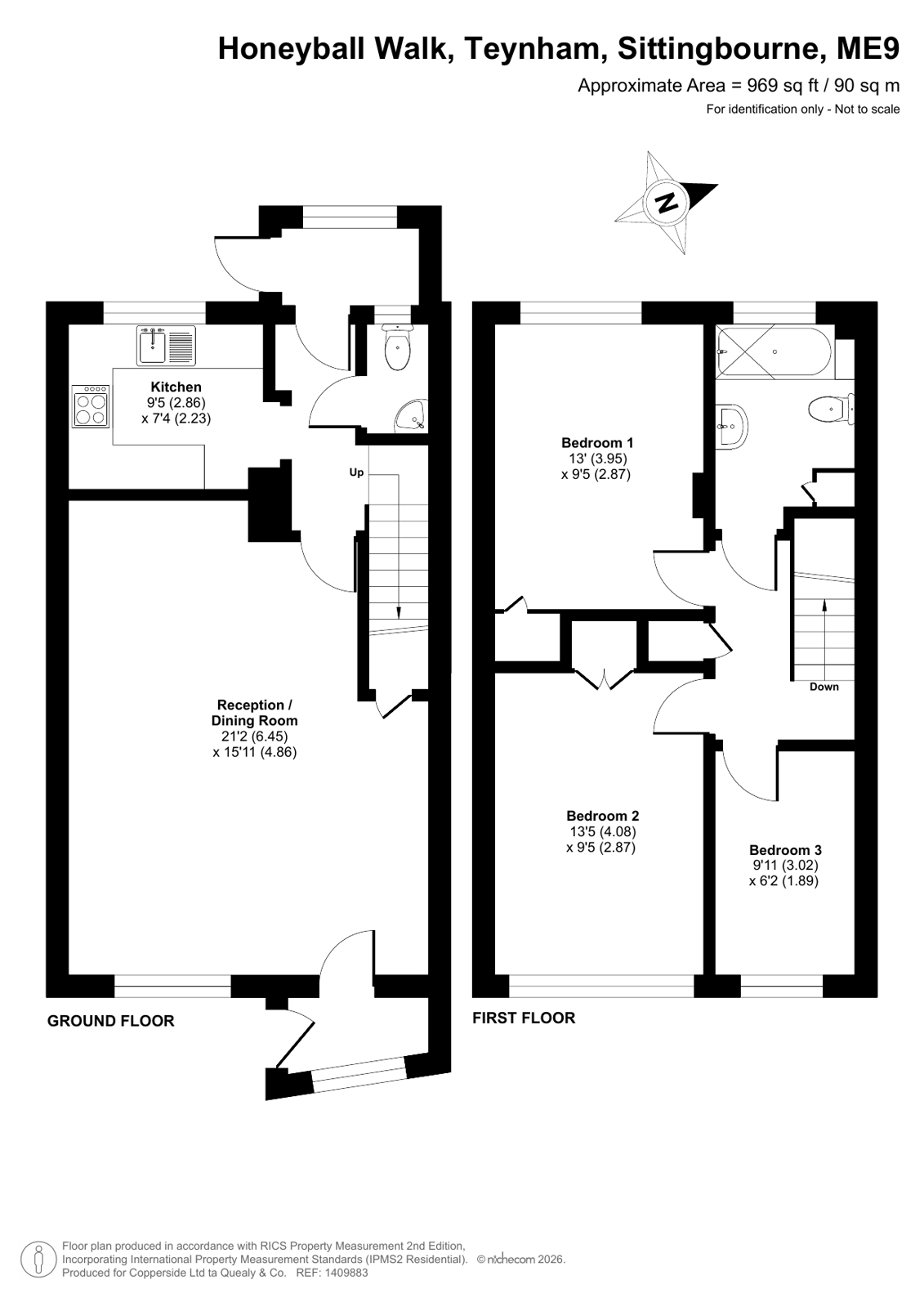 Situated in the popular village of Teynham, this well-presented three-bedroom home at 60 Honeyball Walk offers spacious and practical accommodation ideal for families, first-time buyers, or investors alike. On the ground floor, the home features a generous reception and dining room. A separate fitted kitchen offers good storage and workspace, while a convenient cloakroom and access to the staircase complete the layout. The first floor comprises three well-proportioned bedrooms and a family bathroom serves the upper floor, fitted with a bath and shower facilities. Externally, the property benefits from a garage en bloc. Teynham benefits from excellent transport links, with easy access to nearby amenities, schools, and recreational facilities. Both Sittingbourne and Faversham are about four miles away. Viewings are strictly by appointment only and can be arranged by contacting our office.
