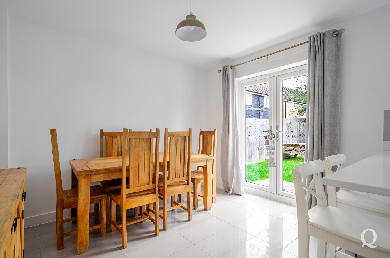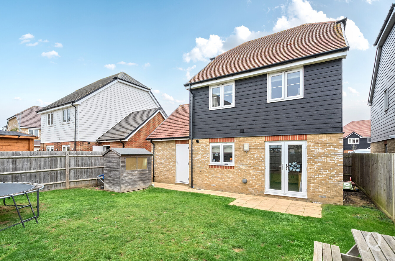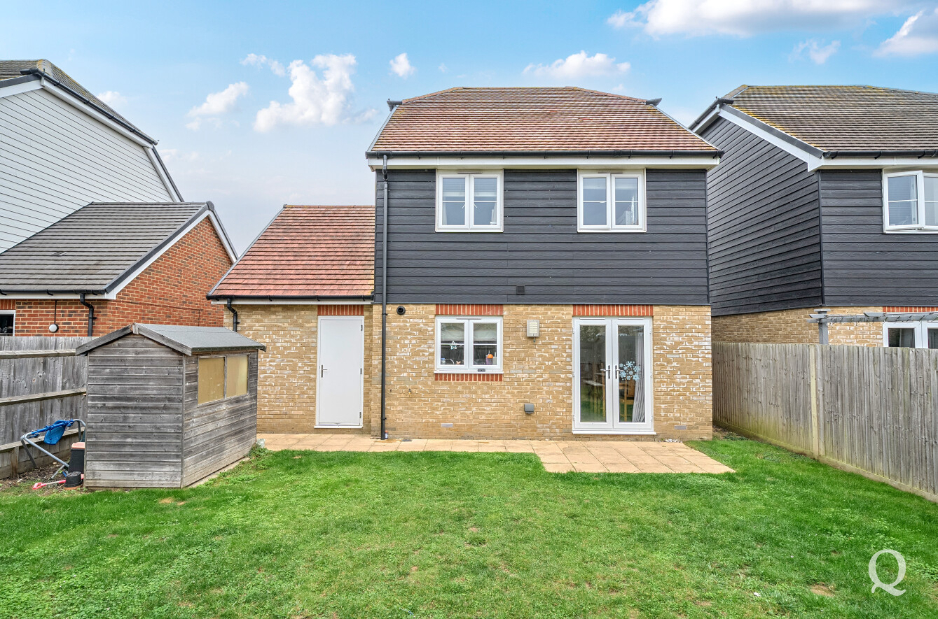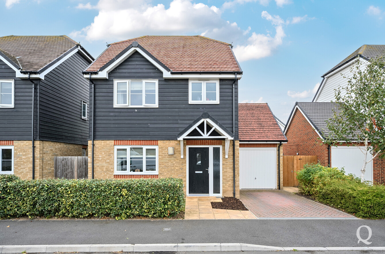 This modern detached house offers well-planned accommodation ideal for family living. On the ground floor, there is a welcoming sitting room to the front and a spacious kitchen/dining room to the rear, providing an excellent space for entertaining with direct access to the garden. A convenient WC completes the downstairs layout. Upstairs, the main bedroom benefits from an ensuite shower room, alongside two further bedrooms and a family bathroom. Outside, the property features a garage and driveway to the front, while to the rear there is a good-sized garden laid to lawn with a patio area, perfect for outdoor dining and relaxation. The Great East Hall development boasts strong transport connections and is located close to Sittingbourne's Euro Link industrial park with fast access to the A249 along the recently completed link of the Northern Distributor Road.