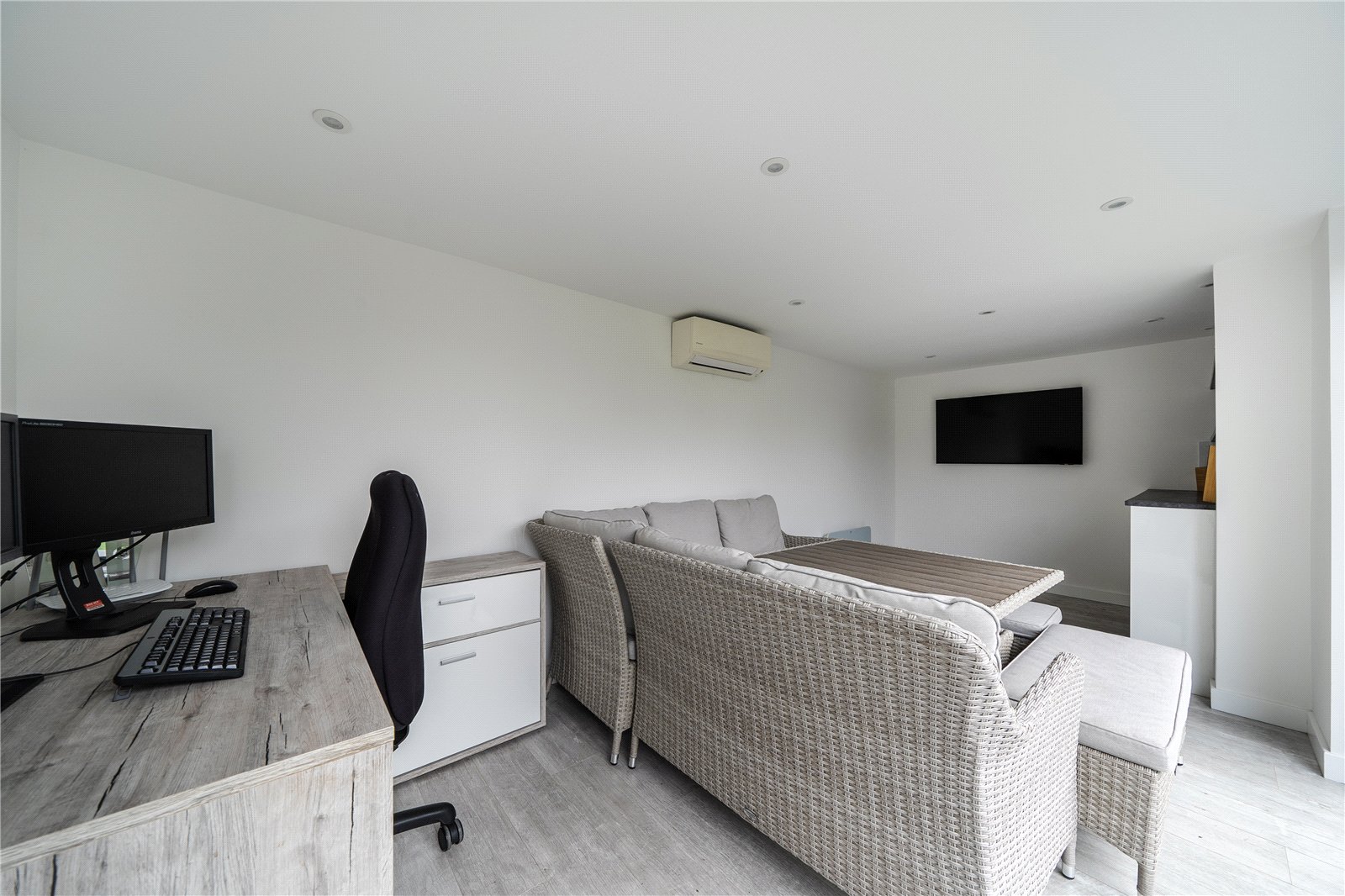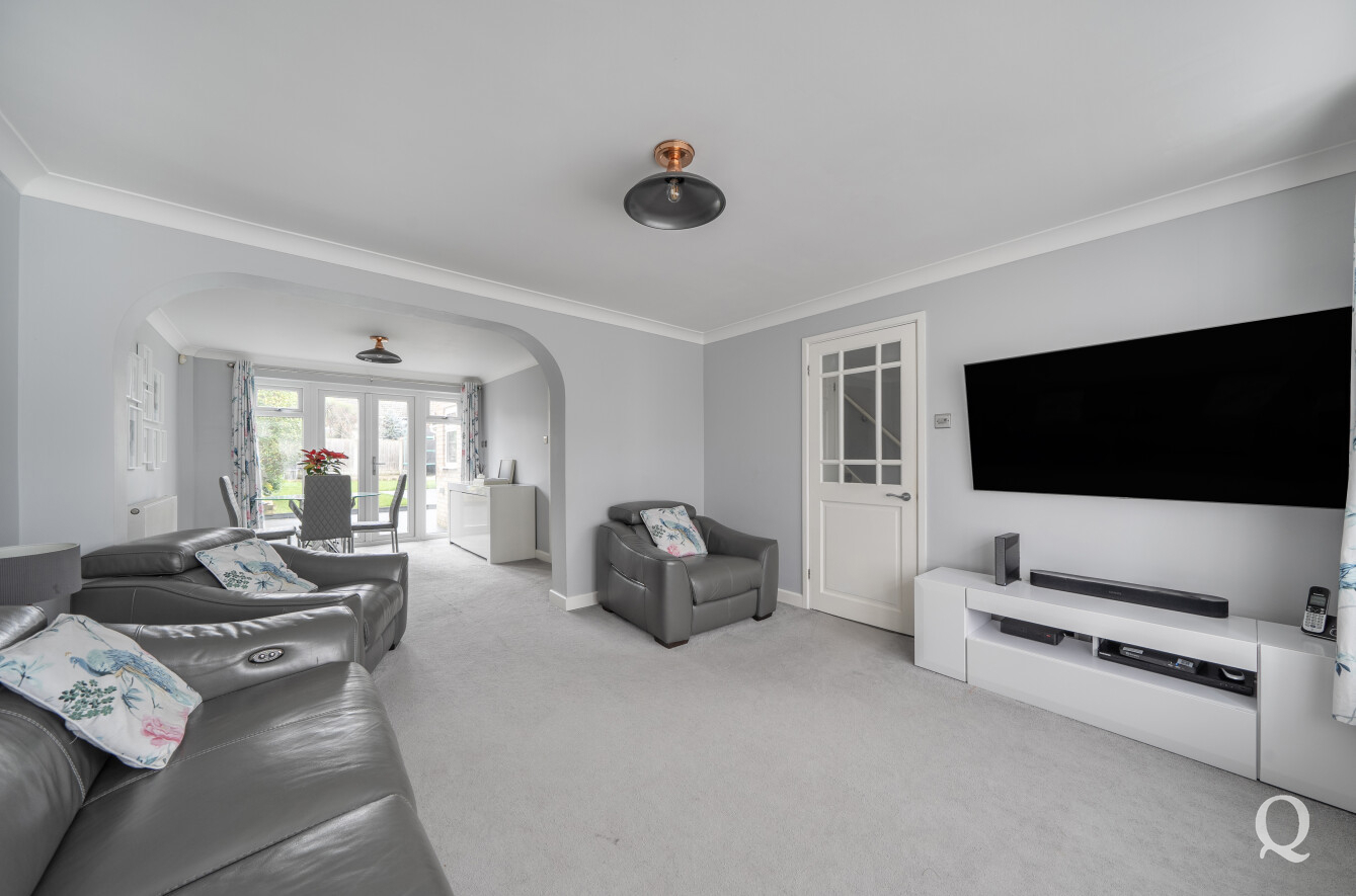 This extended semi-detached home offers well-balanced and versatile accommodation, beginning with an entrance porch and welcoming hallway leading through to a spacious front reception room featuring a bay window. This room flows seamlessly into a separate dining room area with patio doors opening onto the rear garden. The property further benefits from an extended kitchen, which in turn leads into a useful utility area with a convenient ground floor shower room. Upstairs, there are three generous bedrooms along with a modern family bathroom comprising a bath and separate shower cubicle. Externally, the home enjoys a garage and a large driveway providing parking for around 2-3 vehicles to the front, while to the rear is a well-maintained garden with lawn, attractive decking areas and a versatile office/hobby room, all set within a highly sought-after location.