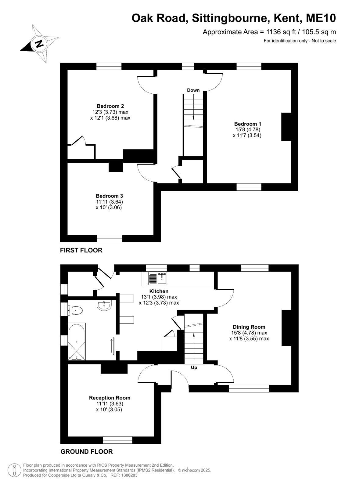 Arranged over two floors and measuring approximately 1,136 sq ft, the ground floor features a welcoming reception room to the front, a separate dining room, and a well-proportioned kitchen. A family bathroom completes the downstairs accommodation.