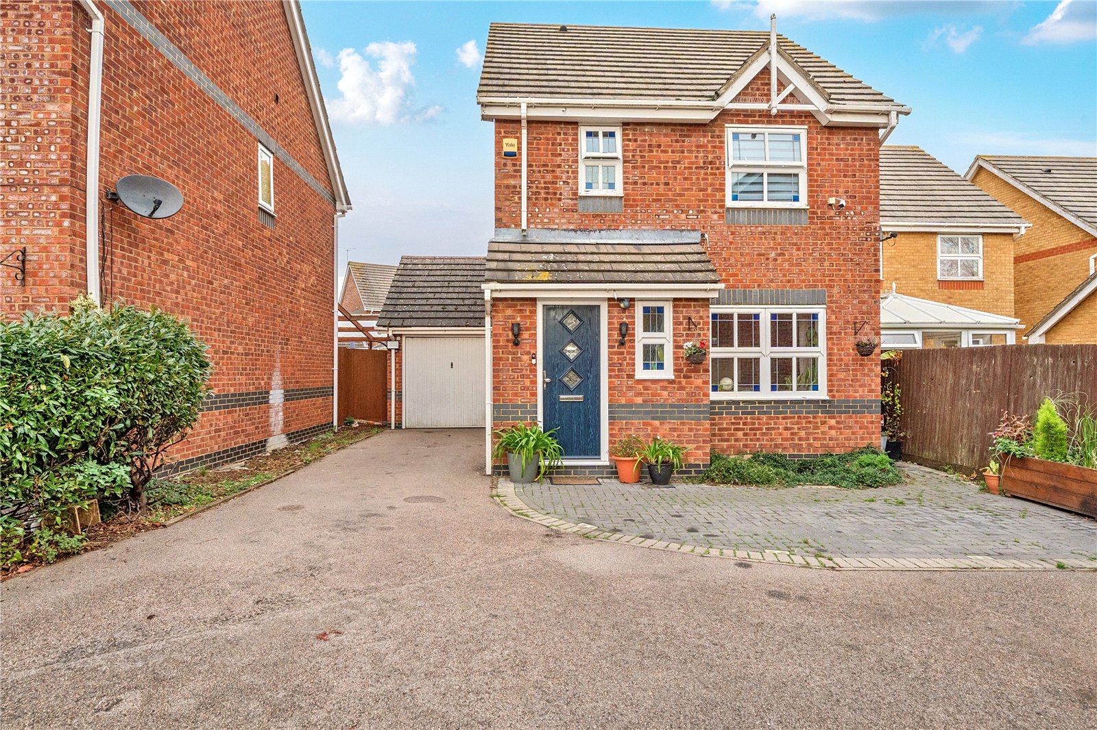 SMARTLY PRESENTED DETACHED HOUSE WITH THREE BEDROOMS, KITCHEN/DINER, DOWNSTAIRS WC, ENCLOSED REAR GARDEN, GARAGE AND DRIVEWAY PARKING IN A POPULAR CUL DE SAC WITH GOOD TRANSPORT LINKS