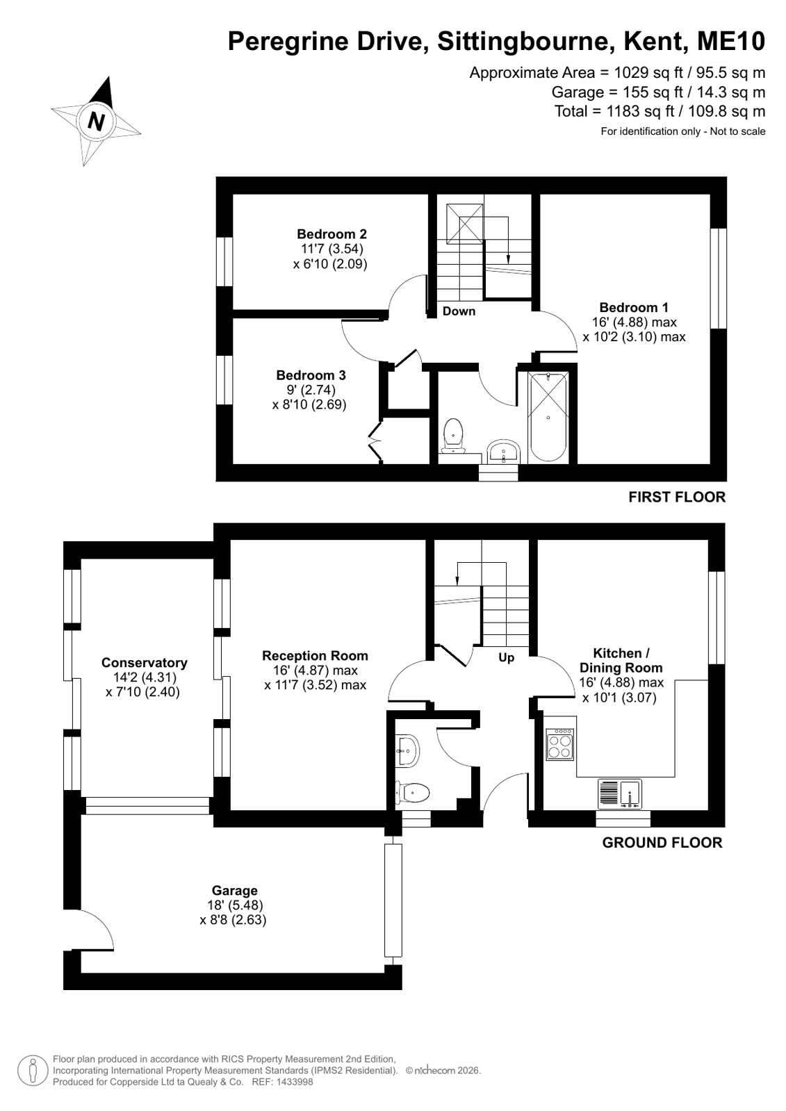This detached family home offers well-balanced accommodation ideal for modern living. The ground floor comprises a welcoming entrance hall leading through to a spacious kitchen/dining room, perfect for both everyday family life and entertaining. There is also a separate reception room with direct access to a bright conservatory, providing additional living space, along with the convenience of a downstairs WC. Upstairs, the property features three well-proportioned bedrooms and a family bathroom. Externally, the home benefits from a garage, driveway parking, and a rear garden, offering a great space for outdoor relaxation. Sittingbourne town centre and mainline railway station (offering regular High Speed services to London) are no more than 0.75 miles away. Peregrine Drive is ideally located for access to a number of popular primary and secondary schools (all within walking distance).