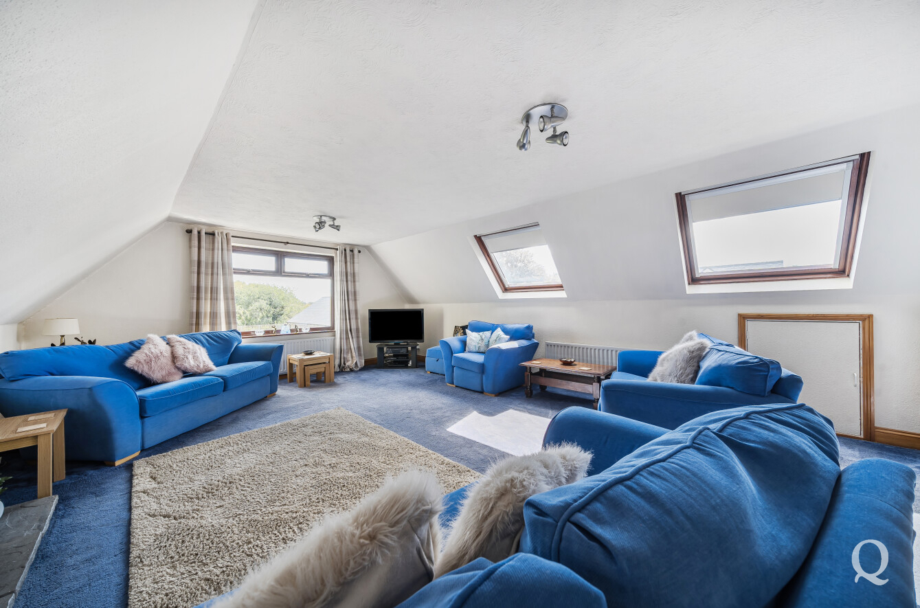 Upstairs, the home opens up to reveal a delightful reception room, a versatile and expansive space with characterful proportions that make it equally suited to use as a sitting room, studio, or family lounge. A further double bedroom is also located on this floor, offering privacy and views across the surrounding area. The thoughtful layout provides flexibility, making the property well-suited to families, couples, or those looking for additional workspace.