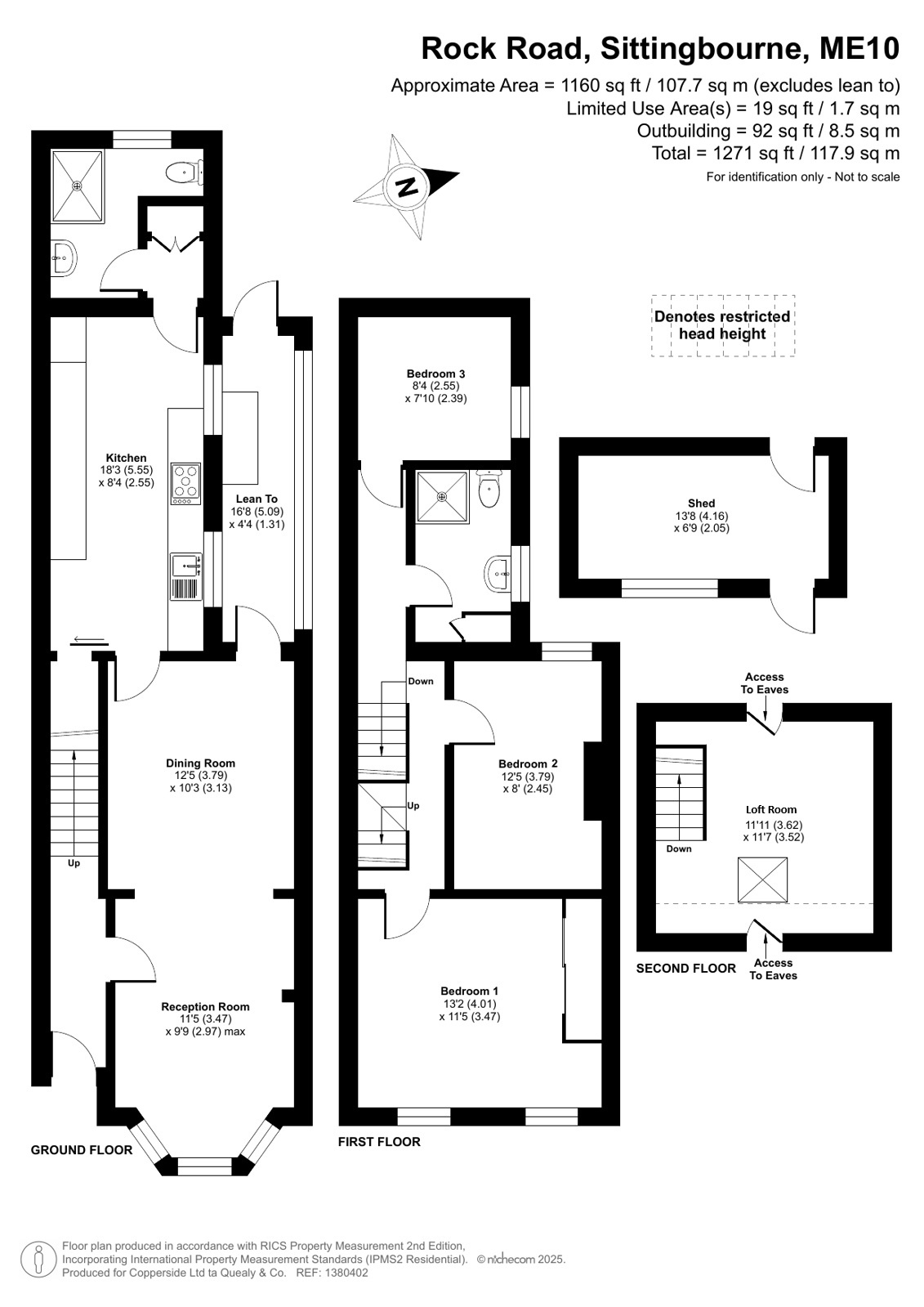 The property spans three floors and features three well-proportioned bedrooms, two bathrooms, and a useful loft room. The ground floor includes a welcoming bay-fronted reception room, a separate dining area, and an extended kitchen with ample storage and workspace.