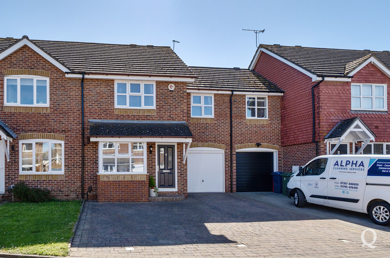 This modern and well-presented terraced house is situated on the sought-after Church Milton development, tucked away in a quiet cul-de-sac setting. The property offers a welcoming entrance hallway leading through to a spacious reception room, ideal for both relaxing and entertaining. To the rear, a contemporary fitted kitchen spans the width of the house, providing a stylish and practical space with direct access to the garden. Upstairs, the home comprises three well-proportioned bedrooms, with the main bedroom benefiting from fitted wardrobes and a private ensuite shower room. A modern family bathroom serves the remaining bedrooms. Externally, the property further benefits from a garage, driveway parking, and a well-maintained south-west facing garden, perfect for enjoying afternoon and evening sun. Turner Close is situated on the Church Milton development, about 2 miles from Sittingbourne town centre offering shopping facilities and a mainline railway station with regular High Speed services to London. The property is also ideally located for easy access to the A249 and M2.