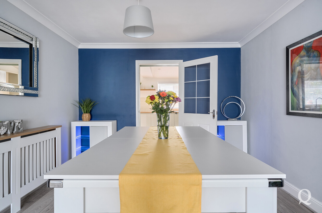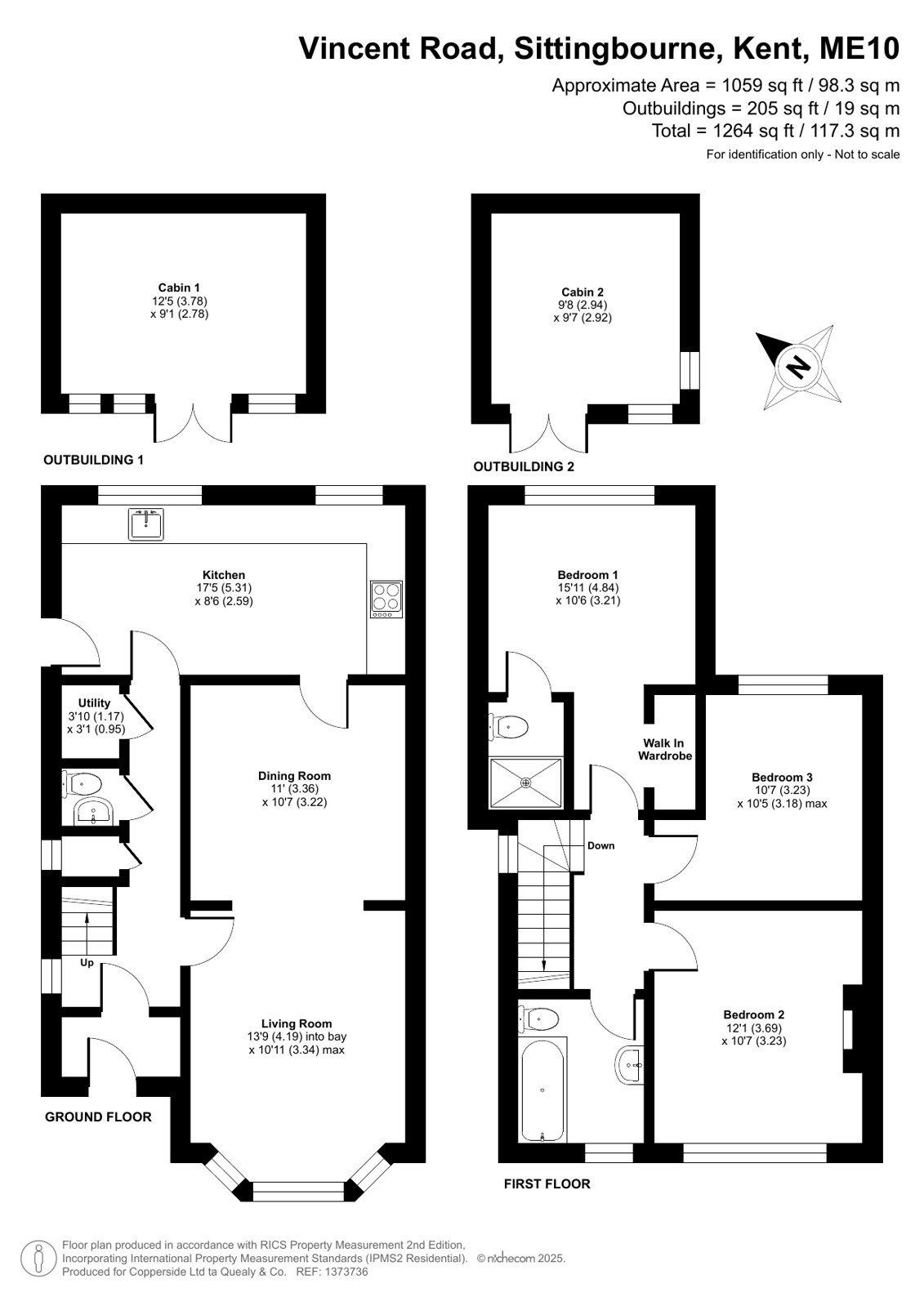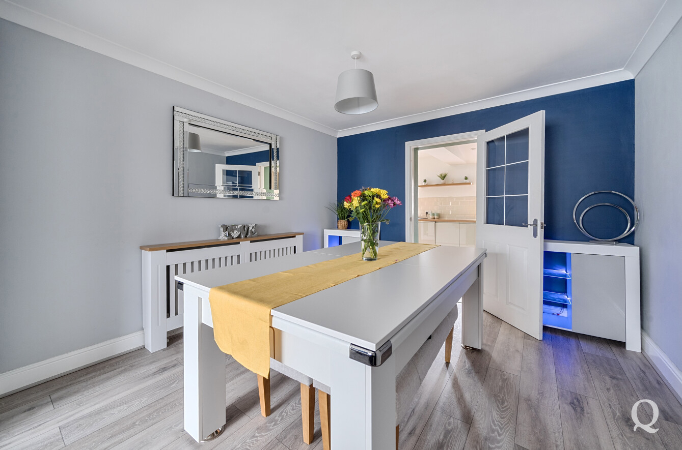 This well-presented and extended semi-detached house offers spacious and stylish accommodation throughout and is being sold with the benefit of having no onward chain. The property features an entrance porch and welcoming hallway leading to a bright open-plan living and dining room with a bay window to the front. The large, modern fitted kitchen provides ample space for cooking and entertaining, complemented by a useful utility room and ground-floor WC. Upstairs, the main bedroom benefits from an ensuite shower room and a walk-in wardrobe, while two further double bedrooms and a family bathroom complete the first floor. Outside, there is good driveway parking to the front and a generous rear garden with two versatile outbuildings, one of which is currently used as a games room and bar - ideal for entertaining or additional workspace. Vincent Road is ideally located within walking distance of Sittingbourne town centre and mainline railway station (offering regular High Speed links to London) as well as local schools and shops.