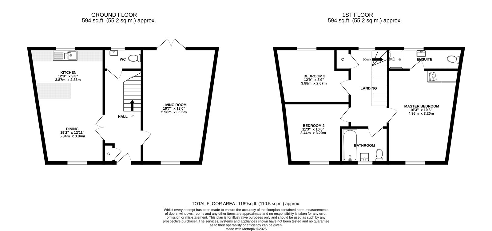 3 Double Bedrooms - including a master bedroom with built-in wardrobes and an en-suite bathroom.