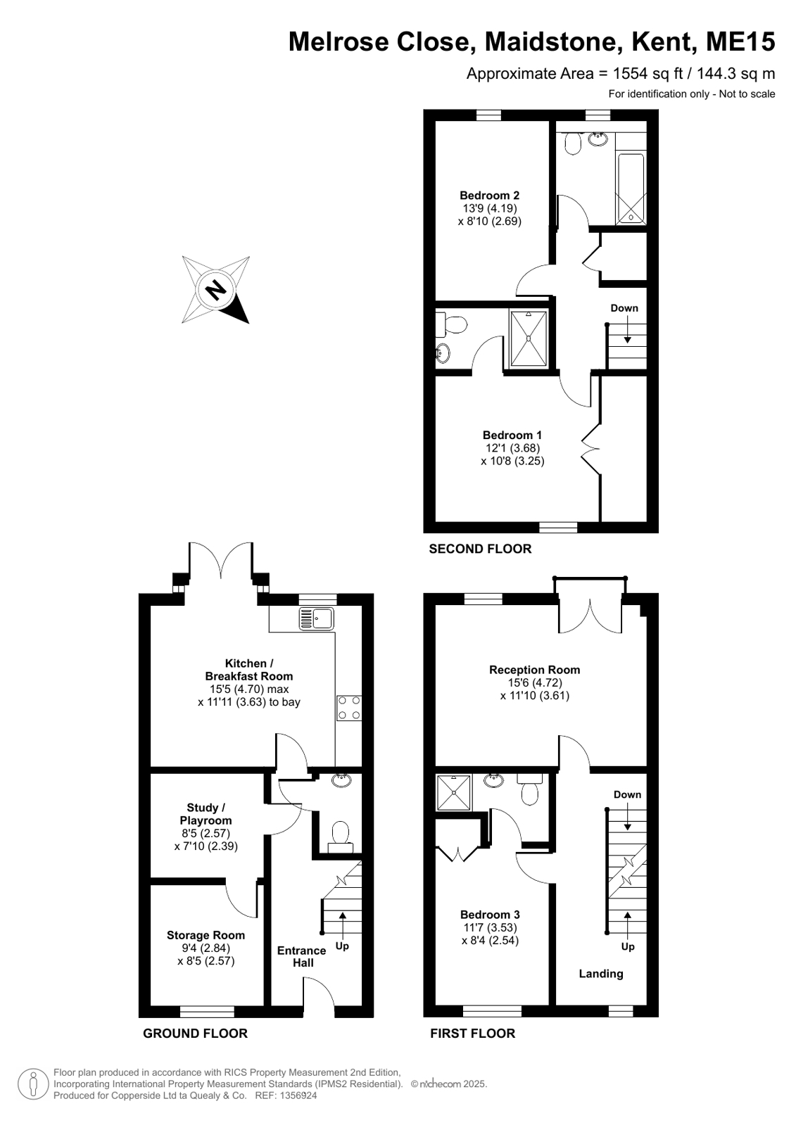 3 Bedroom townhouse for sale in Melrose Close, Maidstone, Kent, ME15