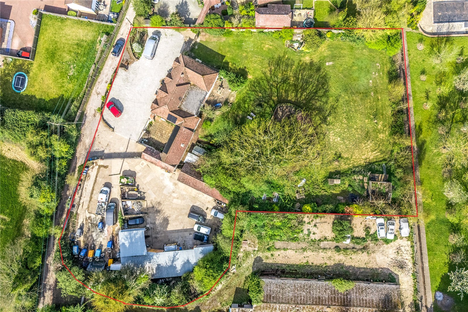 Externally is where this property truly excels. The plot extends to approximately 0.92 acres and is divided between a large residential garden and a substantial yard area. The grounds include a range of outbuildings, workshops, storage units, and covered workspaces, making it perfectly suited to a variety of trades or business uses (subject to any necessary consents).