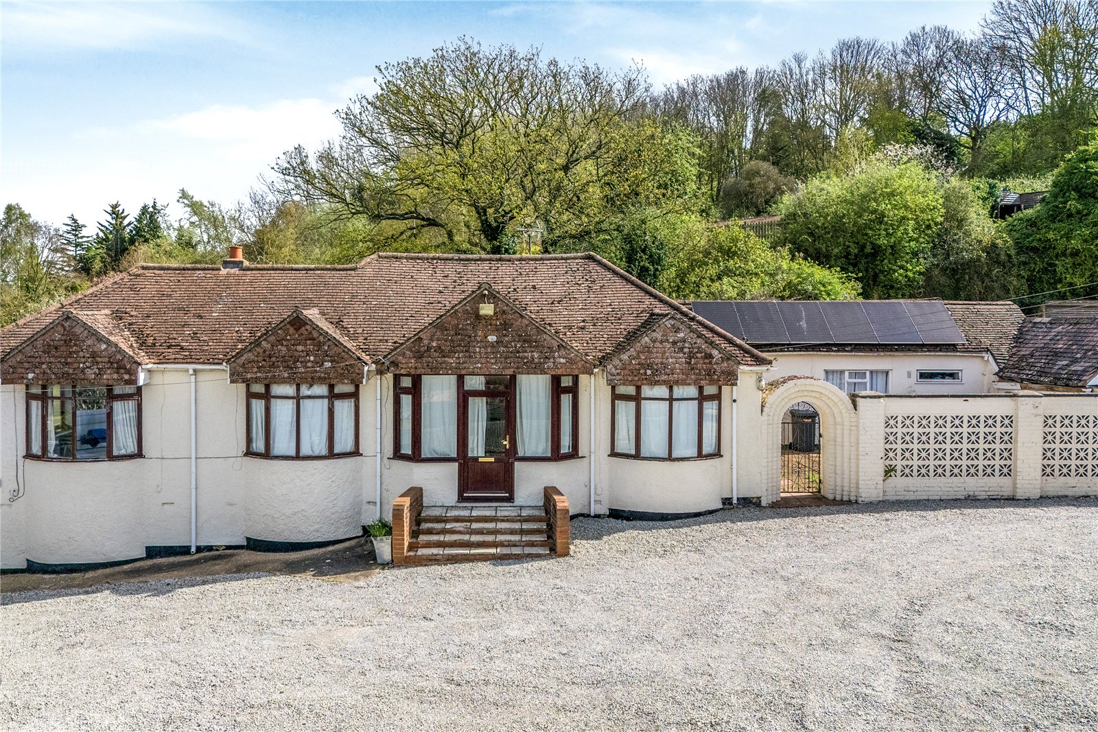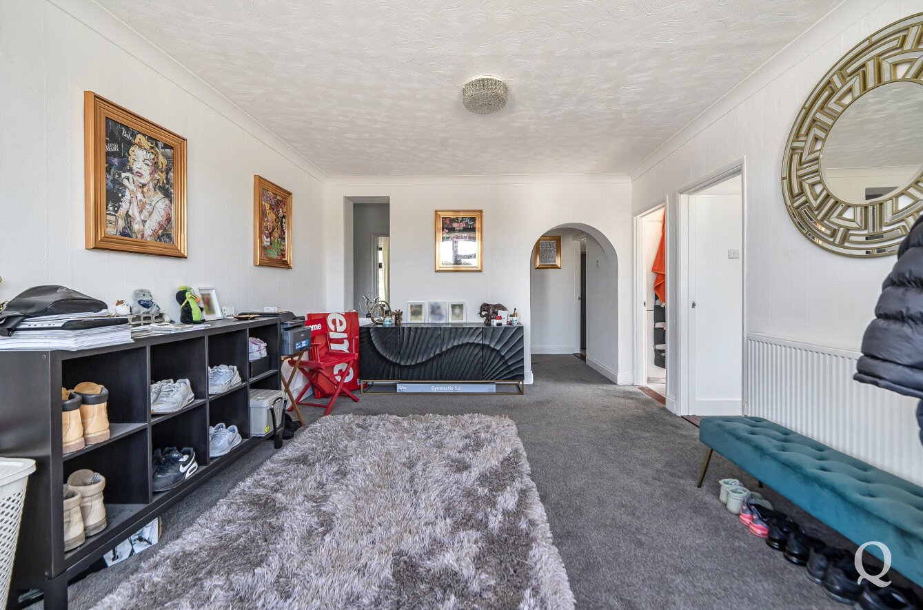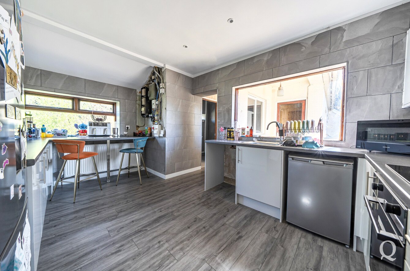The bungalow itself provides well-proportioned accommodation throughout, comprising a spacious living room, separate dining room, and a modern fitted kitchen. There are four bedrooms in total, including a generous principal bedroom, along with two bathrooms serving the home, offering flexibility for families or multi-generational living.