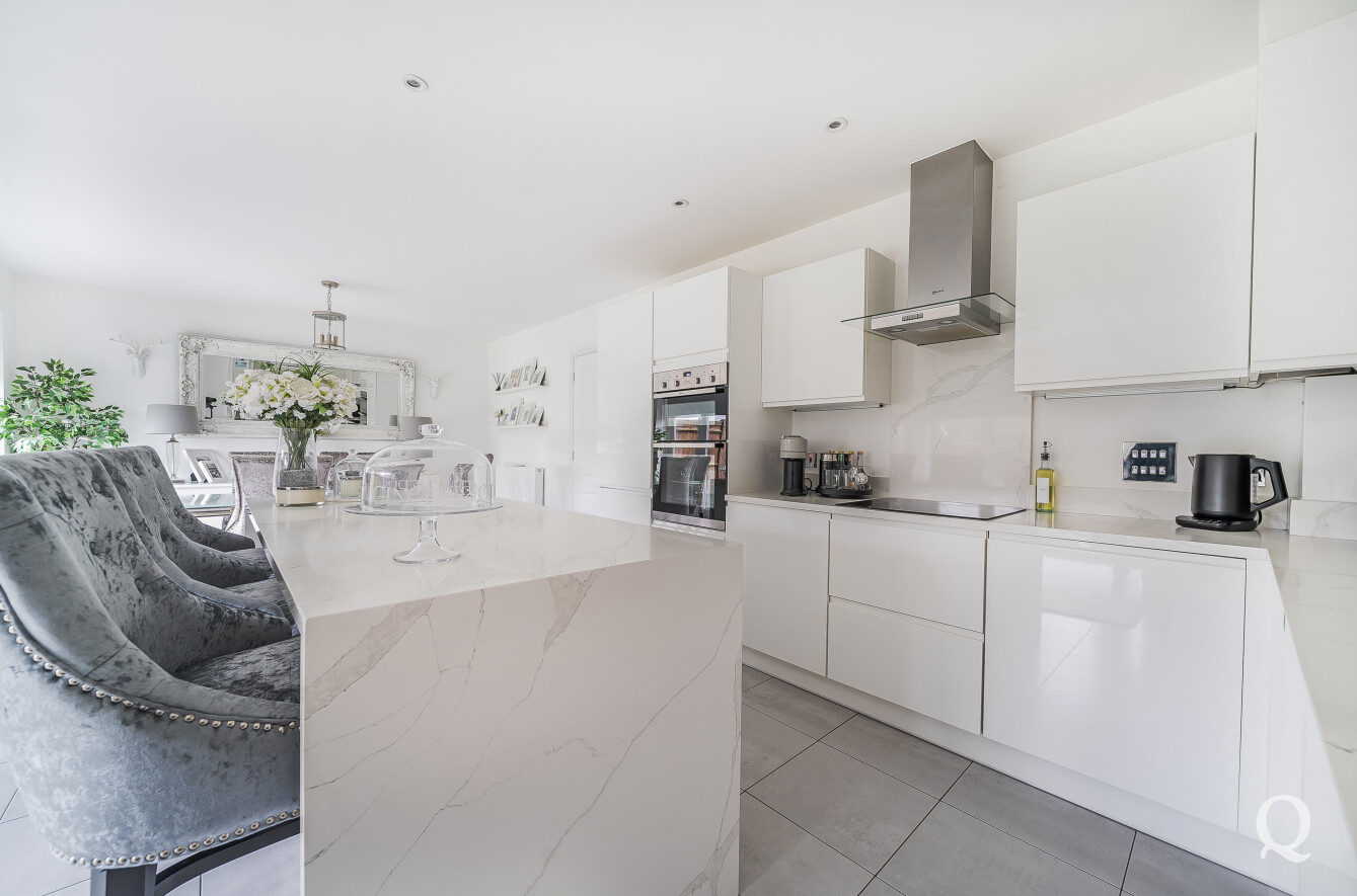 This beautifully presented home is located within the popular Blaxland Grange development in the sought-after village of Newington and offers spacious, well-balanced accommodation arranged over two floors. The ground floor features a welcoming reception room and a stylish open-plan kitchen and dining space to the rear, creating a bright and sociable area ideal for both everyday living and entertaining. The kitchen is finished with high-quality quartz worktops, including a striking waterfall island, and benefits from a sleek all-in-one quartz sink design, adding both practicality and a contemporary feel. Double bi-fold doors open directly onto the rear garden, flooding the space with natural light and creating an excellent connection between indoor and outdoor living. A convenient downstairs WC adds to the practicality of the layout.