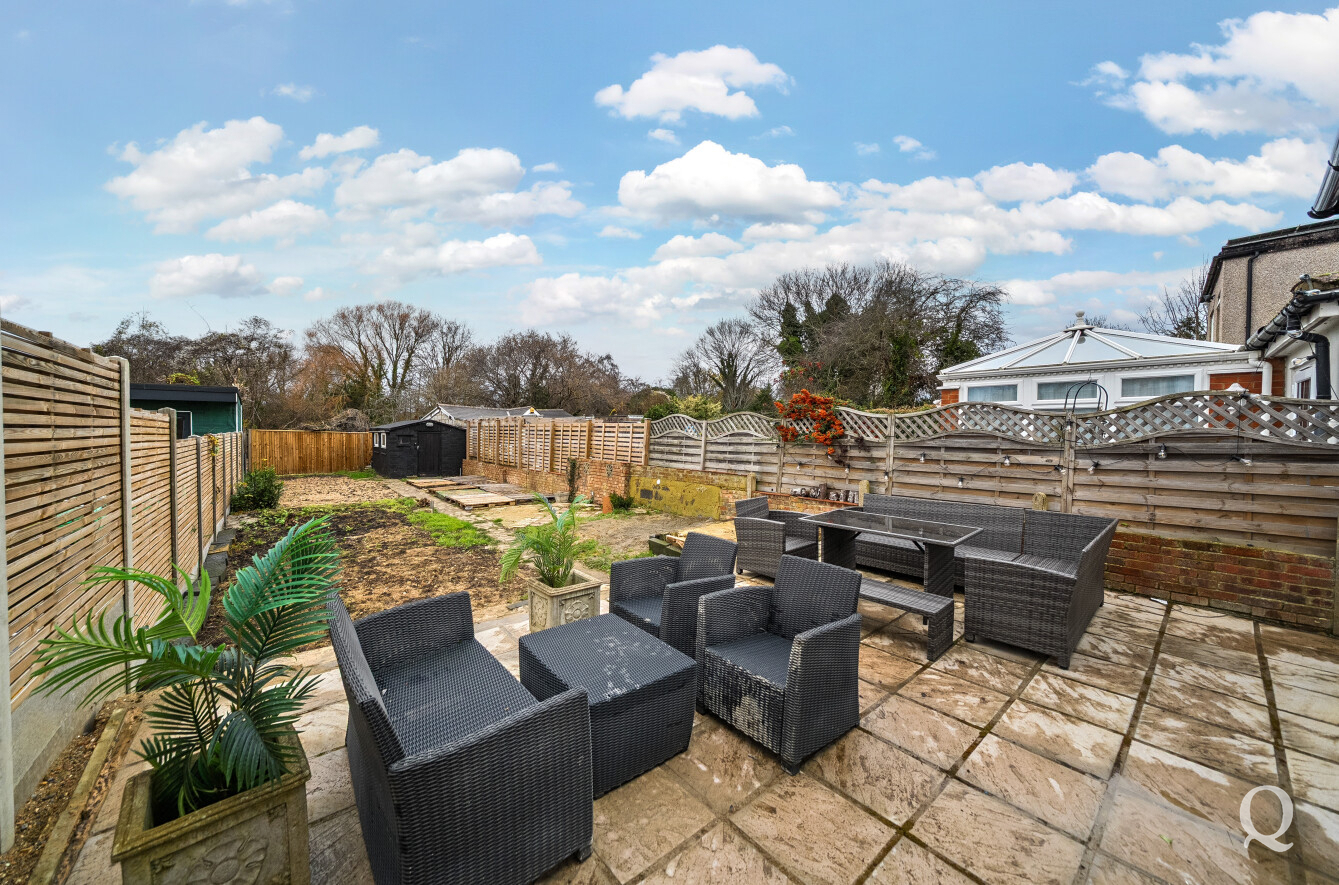 The property sits on a substantial plot with an expansive rear garden, perfect for outdoor dining, play, and relaxation. A brick-built outbuilding provides excellent storage or could be transformed into a workshop, studio, or home gym.