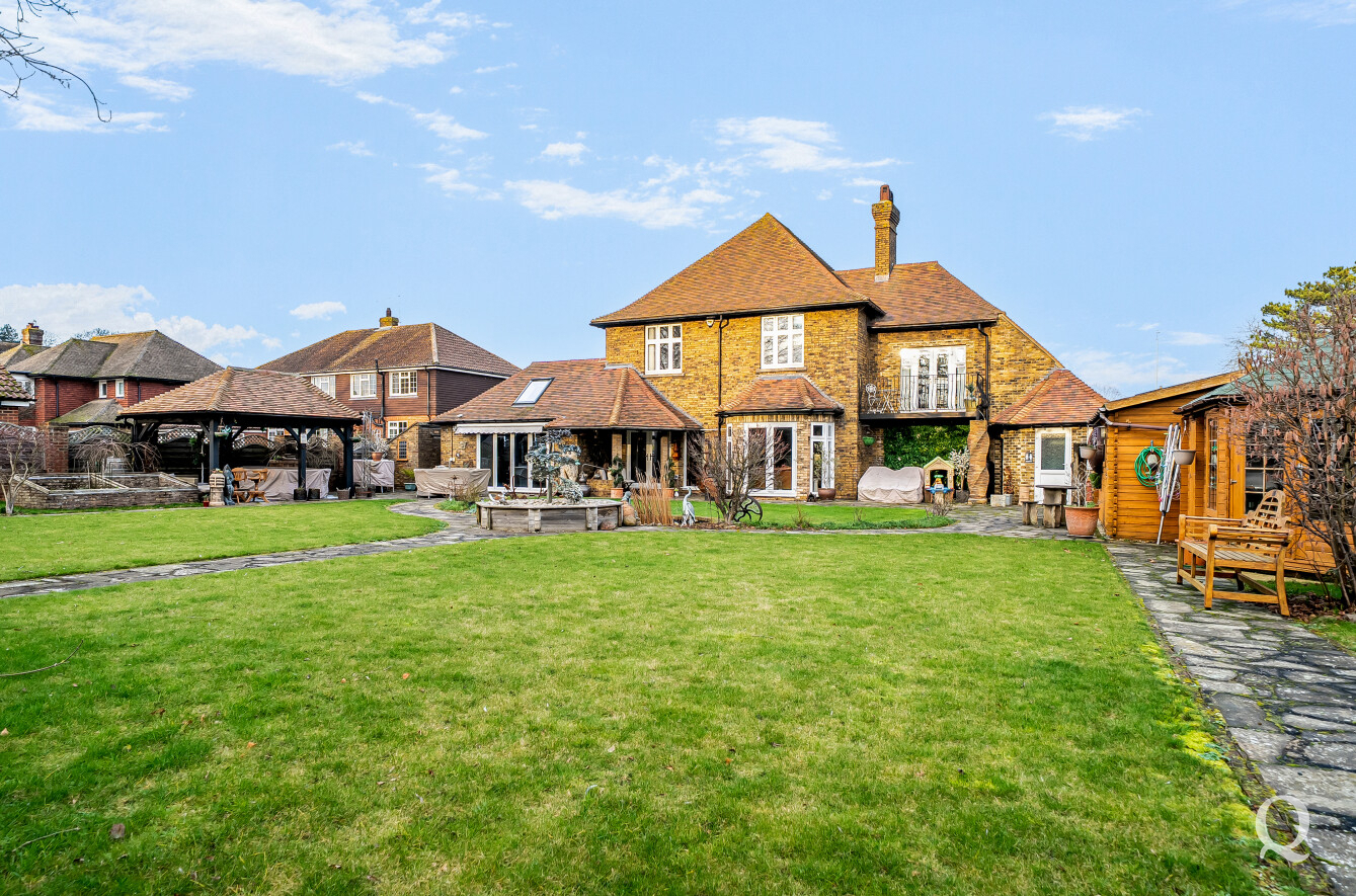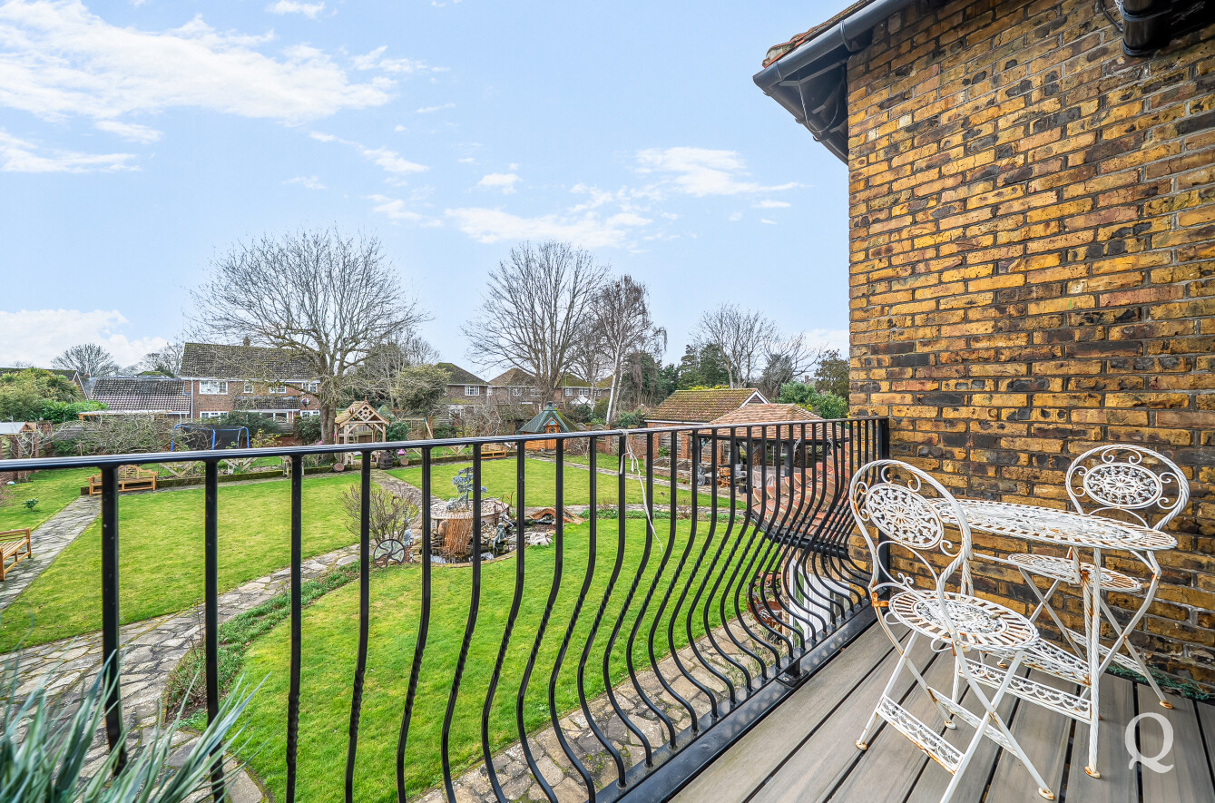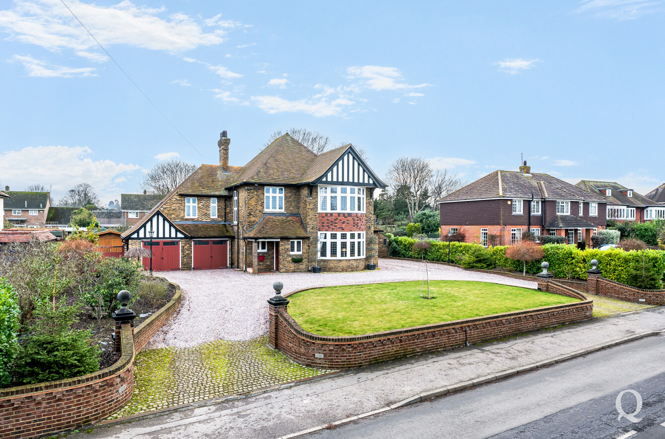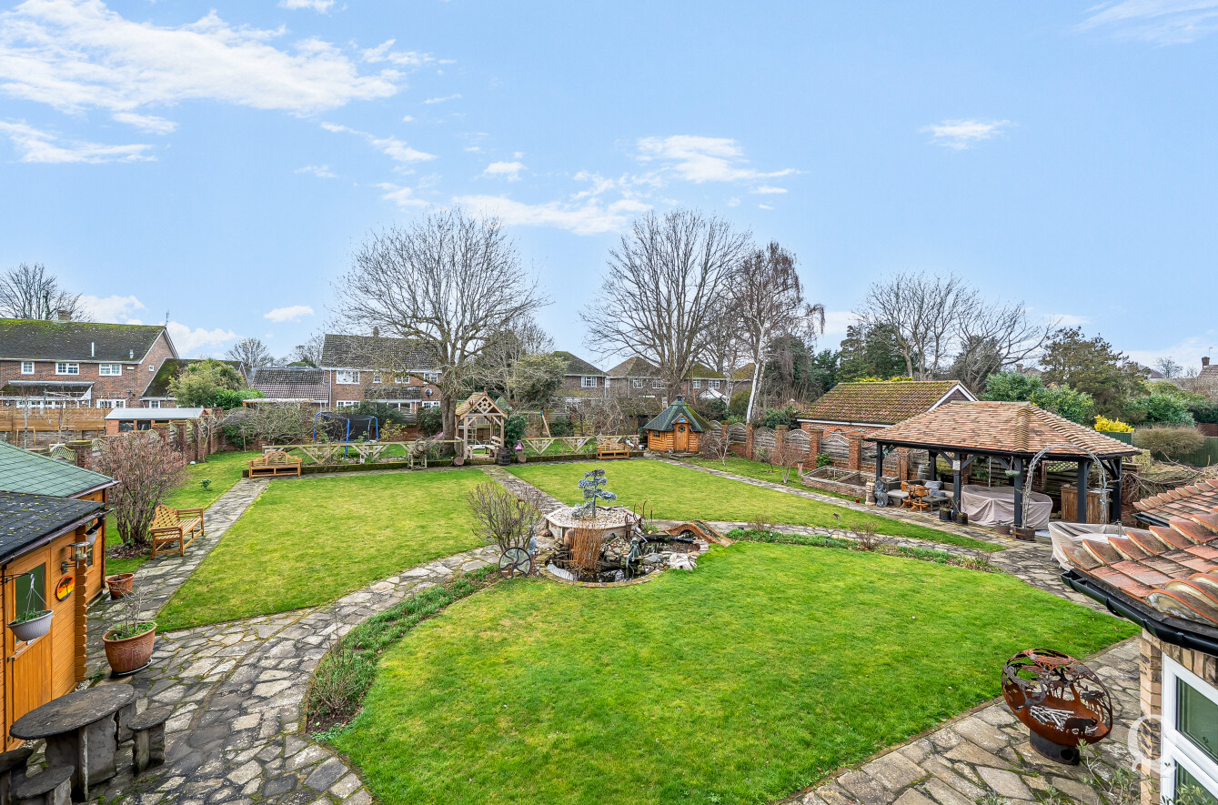 The property is approached through a large and impressive galleried entrance hall, setting the tone for the space and elegance found throughout. From here, a superb front reception room with a replacement wood burner enjoys a large bay window overlooking the frontage, while a separate dining room flows seamlessly into a fabulous modern kitchen, both of which benefit from electric underfloor heating. The kitchen also features solar powered Velux windows and bi-fold doors opening directly onto the rear garden – ideal for both family life and entertaining. A second reception room to the rear benefits from a replacement wood burner and French doors to the garden. A conveniently positioned downstairs WC completes the ground floor. To the first floor, the principal bedroom is located to the front of the house and features a large bay window, a stylish en-suite shower room and a dedicated dressing room. The second bedroom also benefits from its own en-suite shower room and a balcony, while two further generous double bedrooms are served by a spacious family bathroom, fitted with a freestanding bath and a separate shower cubicle. Externally, the property offers an impressive ‘in and out’ driveway providing parking for multiple vehicles, together with a double garage. To the rear is a large, south-facing landscaped garden, thoughtfully arranged and incorporating a range of useful and attractive outbuildings, including a Barbeque Hut Kota, a workshop, store, summer house with additional storage and an outside WC attached to the rear of the garage. This is a truly outstanding home, presented to a very high standard throughout and beautifully in keeping with the age and character of the property, in a highly sought-after location.