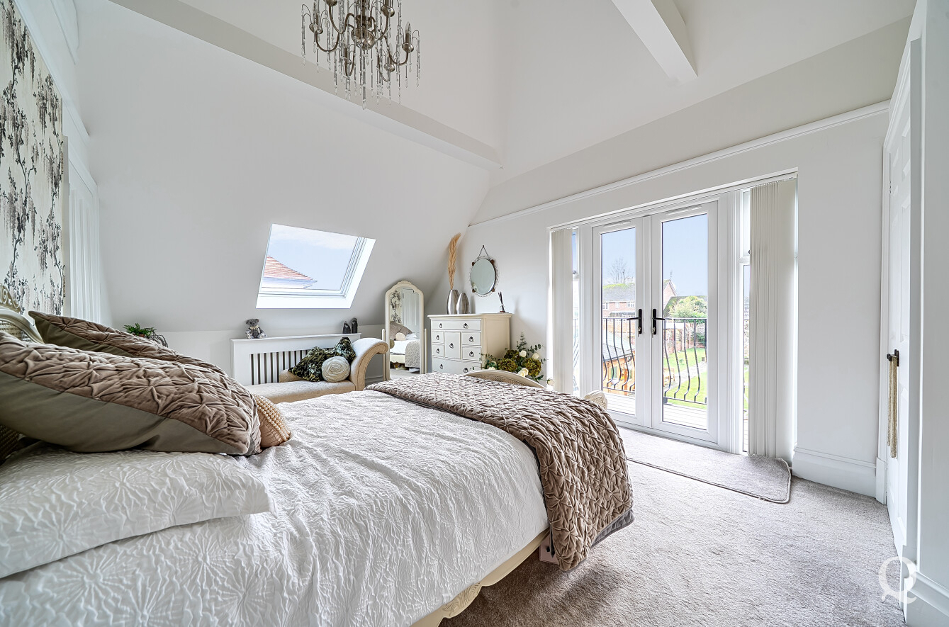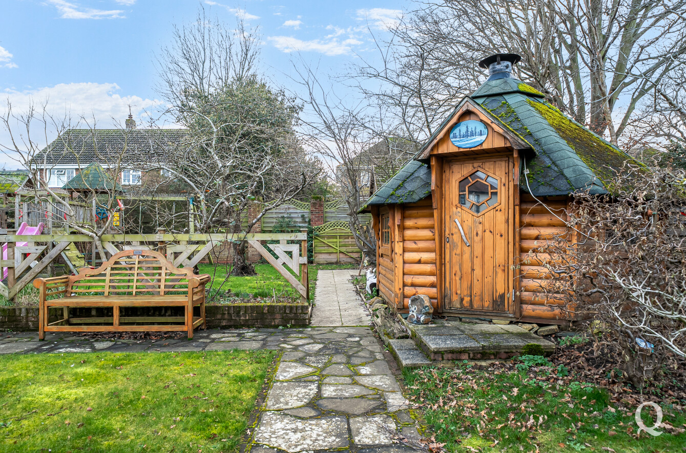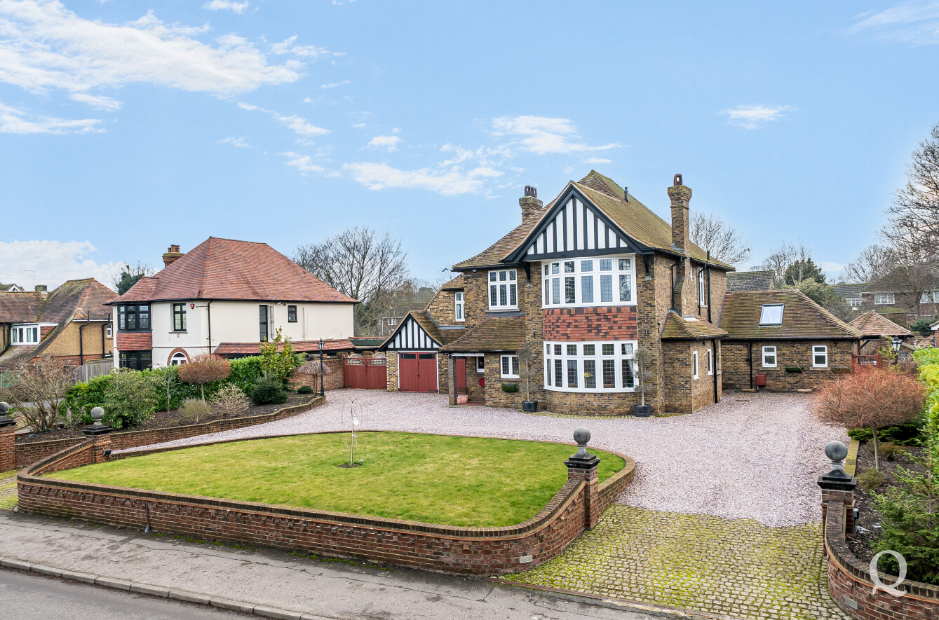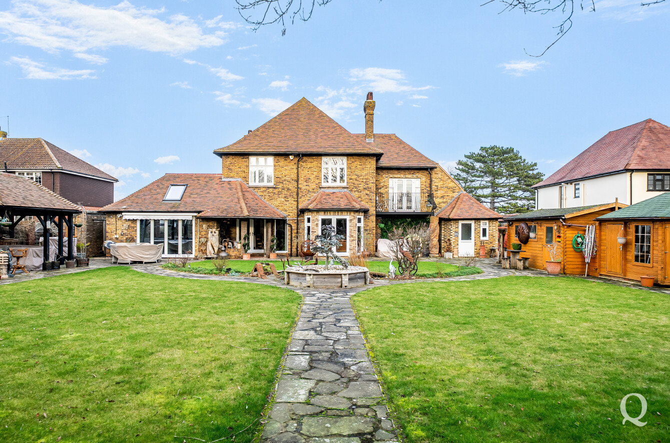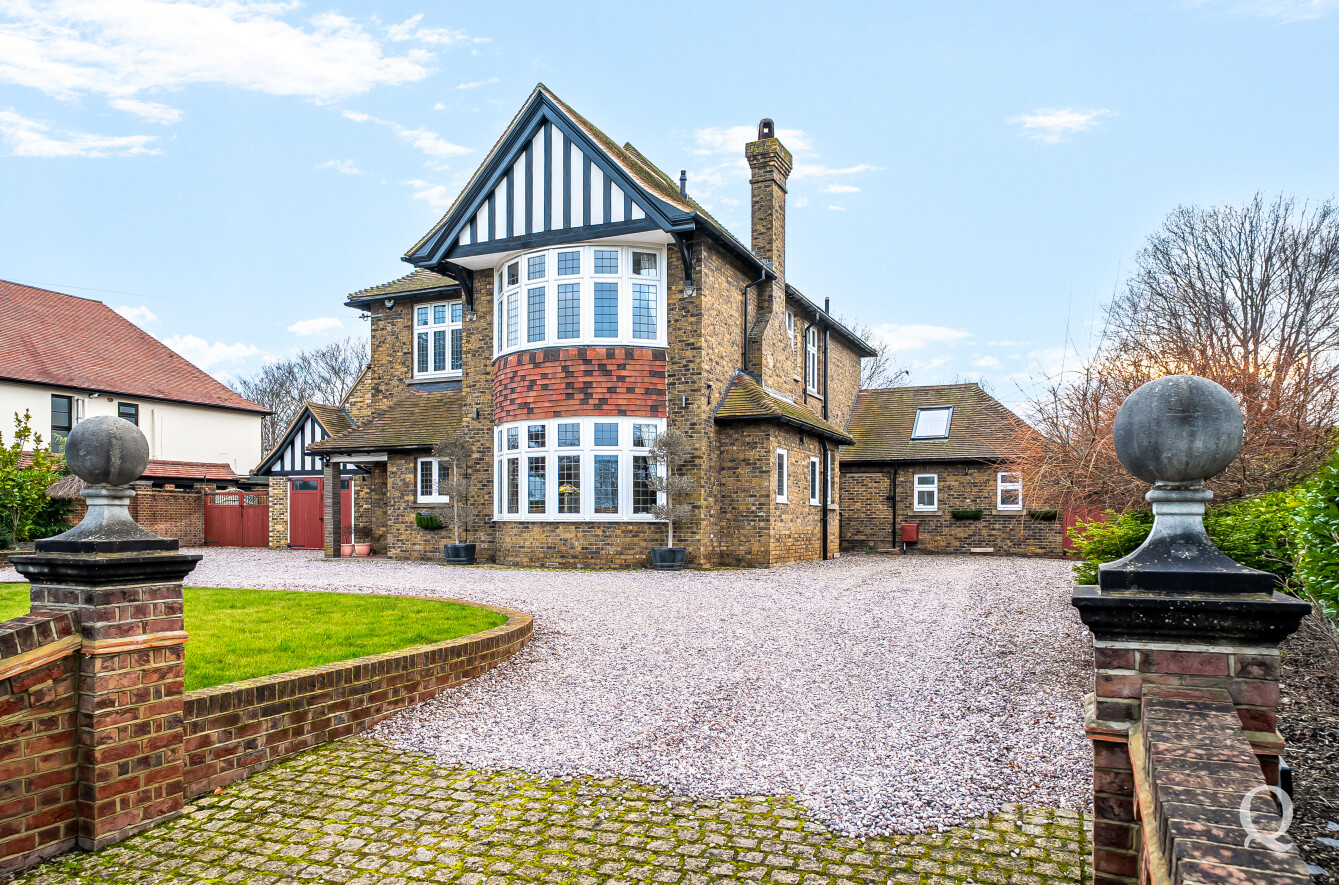 The property is approached through a large and impressive galleried entrance hall, setting the tone for the space and elegance found throughout. From here, a superb front reception room with a replacement wood burner enjoys a large bay window overlooking the frontage, while a separate dining room flows seamlessly into a fabulous modern kitchen, both of which benefit from electric underfloor heating. The kitchen also features solar powered Velux windows and bi-fold doors opening directly onto the rear garden – ideal for both family life and entertaining. A second reception room to the rear benefits from a replacement wood burner and French doors to the garden. A conveniently positioned downstairs WC completes the ground floor. To the first floor, the principal bedroom is located to the front of the house and features a large bay window, a stylish en-suite shower room and a dedicated dressing room. The second bedroom also benefits from its own en-suite shower room and a balcony, while two further generous double bedrooms are served by a spacious family bathroom, fitted with a freestanding bath and a separate shower cubicle. Externally, the property offers an impressive ‘in and out’ driveway providing parking for multiple vehicles, together with a double garage. To the rear is a large, south-facing landscaped garden, thoughtfully arranged and incorporating a range of useful and attractive outbuildings, including a Barbeque Hut Kota, a workshop, store, summer house with additional storage and an outside WC attached to the rear of the garage. This is a truly outstanding home, presented to a very high standard throughout and beautifully in keeping with the age and character of the property, in a highly sought-after location.
