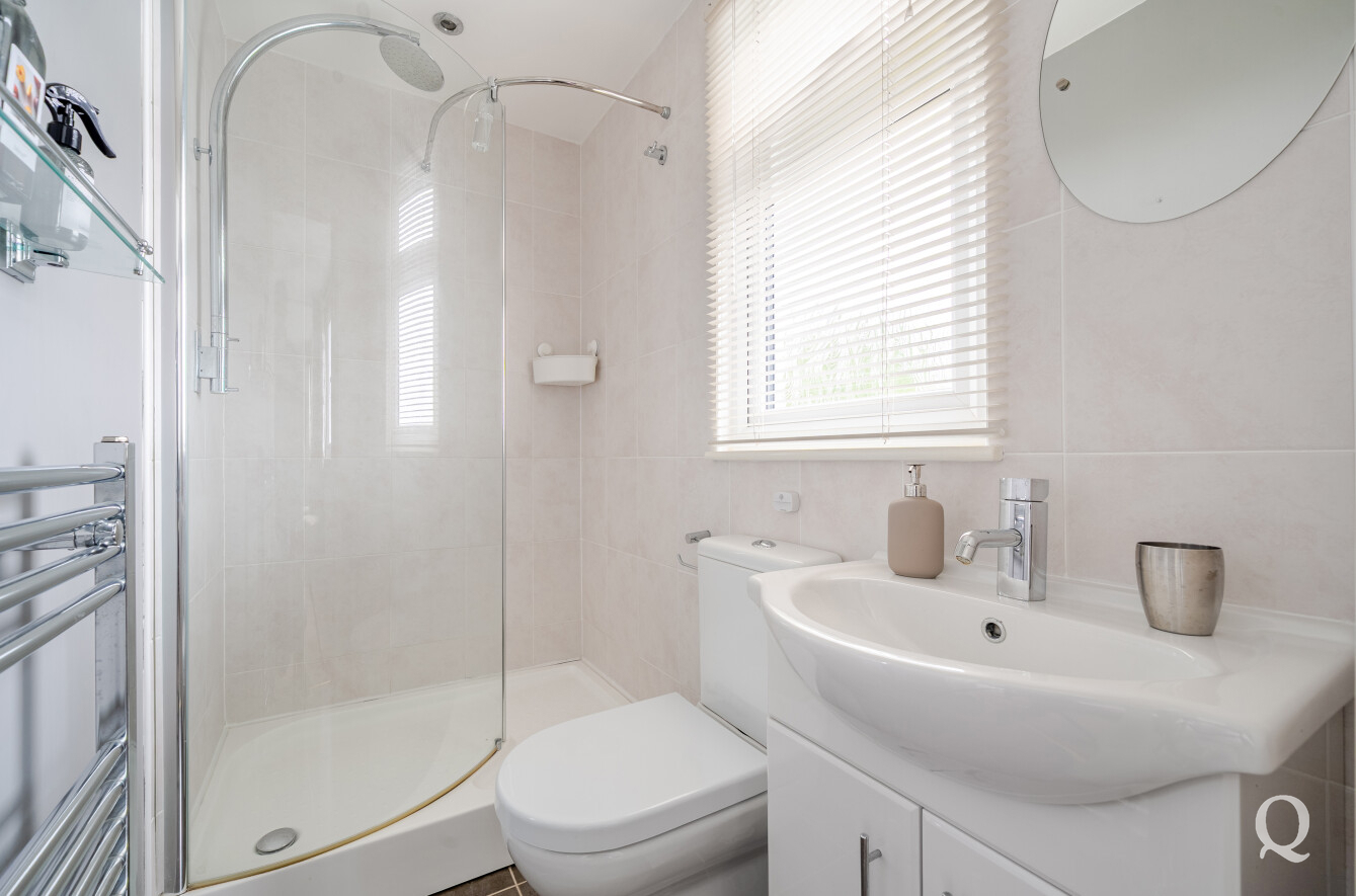 Upstairs, the first floor hosts three beautifully presented bedrooms, each offering comfort and light. The principal bedroom benefits from its own ensuite shower room, while the remaining bedrooms are served by a stylish family bathroom.