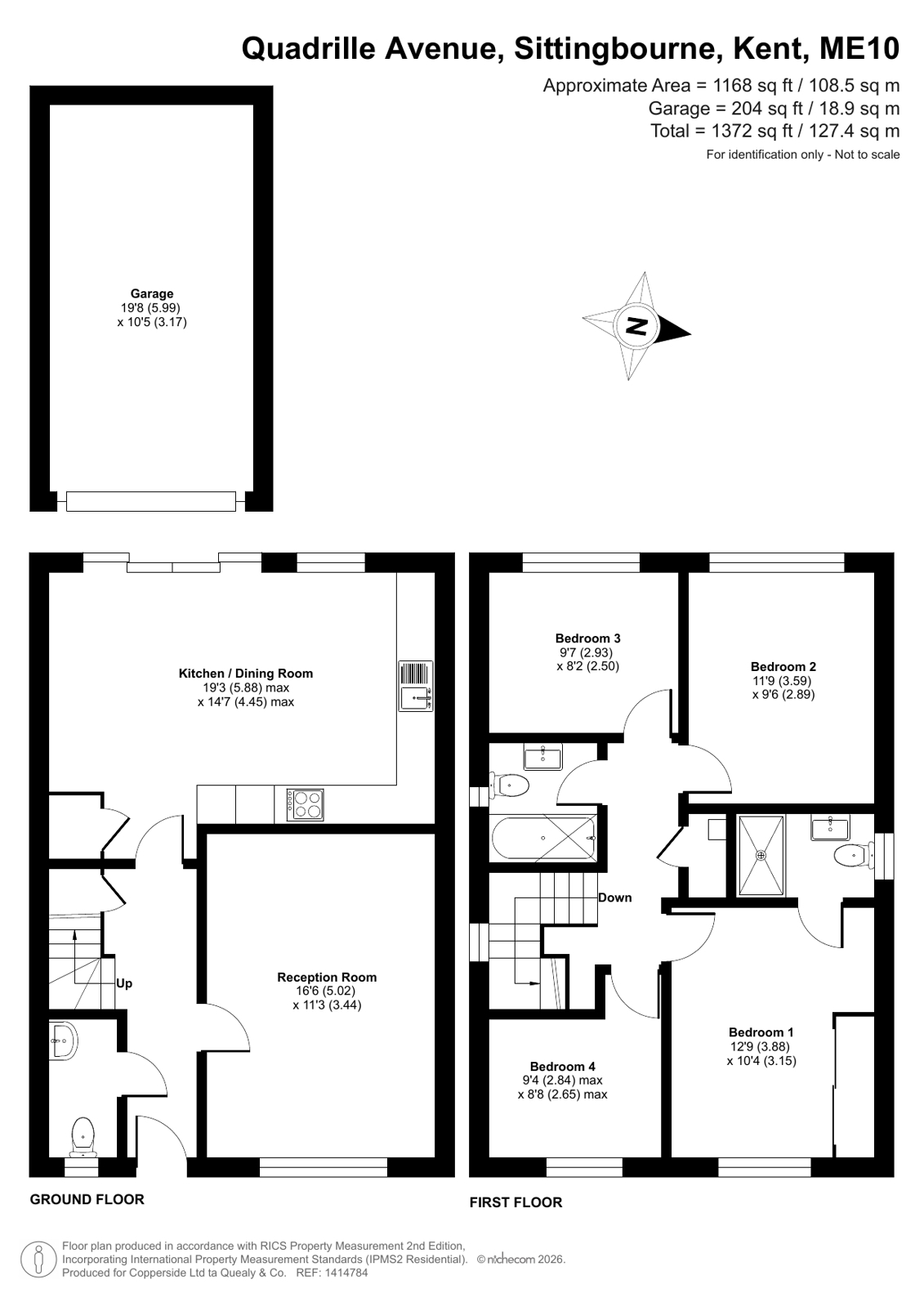 This well-presented home offers a welcoming entrance hall leading to a bright and comfortable reception room, along with a spacious kitchen/dining room with granite worktops and featuring patio doors that open directly onto the rear garden, creating an ideal space for family living and entertaining. A convenient ground floor WC completes the downstairs accommodation. Upstairs, the main bedroom benefits from its own en-suite shower room, while three further well-proportioned bedrooms are served by a modern family bathroom. Externally, the property enjoys a well maintained rear garden, as well as the added advantages of a garage and driveway parking. Quadrille Avenue is conveniently located within easy access of the A249/M2, a local parade of shops and a medical centre as well as schools for children of all ages. Sittingbourne High Street and Mainline Railway station (offering regular High Speed connections to London) are approximately 1.5 miles away.