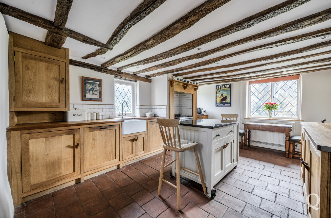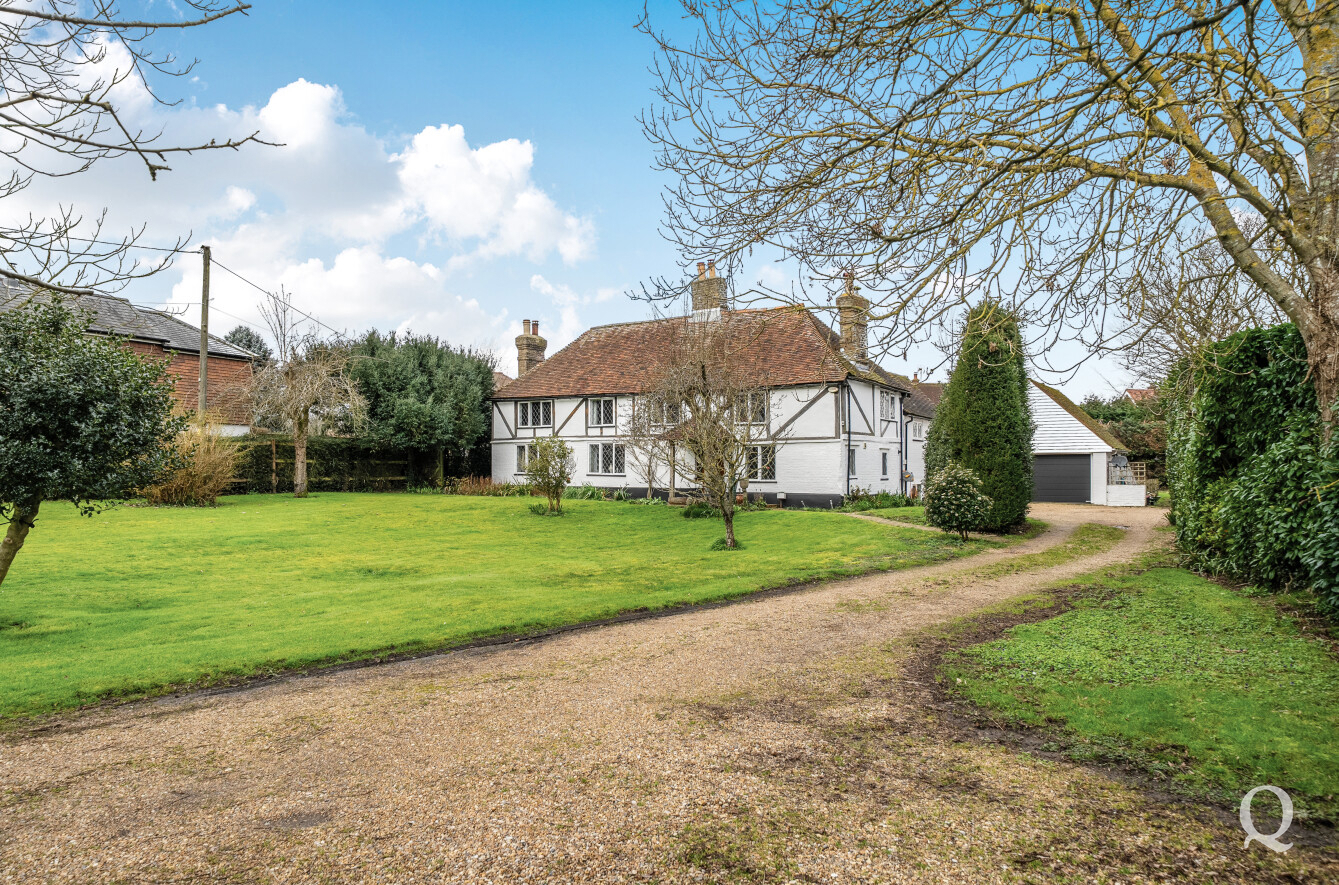 This substantial and beautifully maintained period home which is being sold with the benefit of having no onward chain is rich in charm and character, showcasing exposed beams and open fireplaces throughout. Set within the heart of Bredgar village and located in the Conservation Area, the property benefits from established gardens to both the front and rear. Tucked away from the main road, the house is approached via a long gravel driveway leading to a detached double garage, providing generous parking for multiple vehicles. The well-proportioned accommodation includes a bespoke fitted kitchen/breakfast room, a spacious living room, and a formal dining room featuring exposed beams and an impressive inglenook fireplace. There are four first floor bedrooms served by a family bathroom, while the principal bedroom enjoys a dressing room and en-suite bathroom. Additionally, the ground floor offers the flexibility of a fifth bedroom by using the study with its own shower room and independent access - ideal for guests or multi-generational living. Bredgar village offers a primary school, farm shop, church and public house/restaurant. Junction 5 of the M2 is about 3 miles away and Maidstone, 8 miles. Sittingbourne (4 miles) with fast links to London, offers a good choice of good schools for children of all ages, shopping facilities and mainline railway stations with fast links to London.