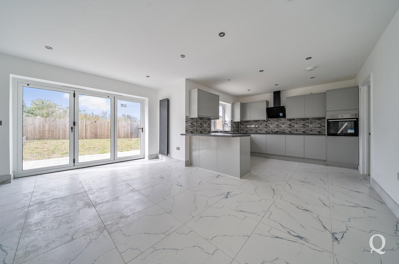 On arrival, you are welcomed by a generous entrance hall that sets the tone for the home’s light and airy interiors. The ground floor boasts two reception rooms, providing flexible space for entertaining or relaxation, while the stunning open-plan kitchen and dining area features sleek finishes and bi-fold doors that open directly onto the rear garden. A separate utility room adds convenience and practicality.