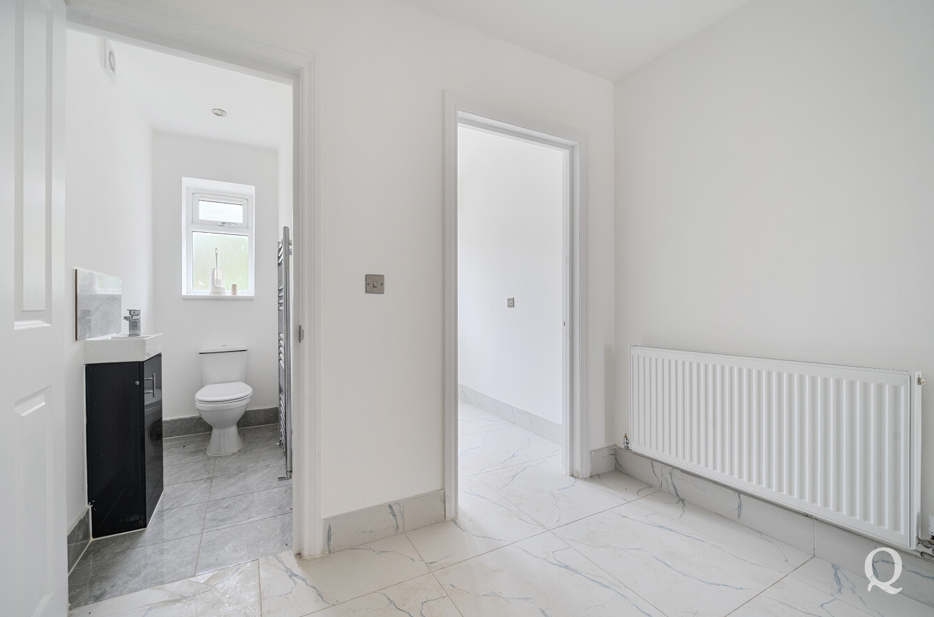On arrival, you are welcomed by a generous entrance hall that sets the tone for the home’s light and airy interiors. The ground floor boasts two reception rooms, providing flexible space for entertaining or relaxation, while the stunning open-plan kitchen and dining area features sleek finishes and bi-fold doors that open directly onto the rear garden. A separate utility room adds convenience and practicality.