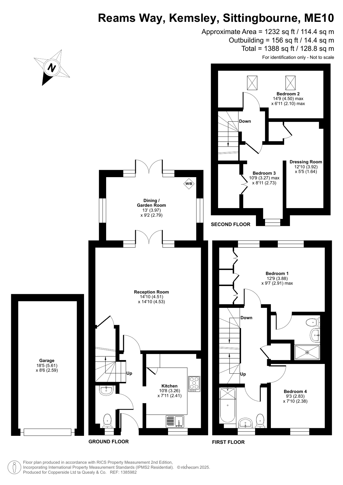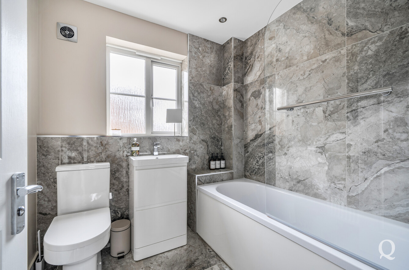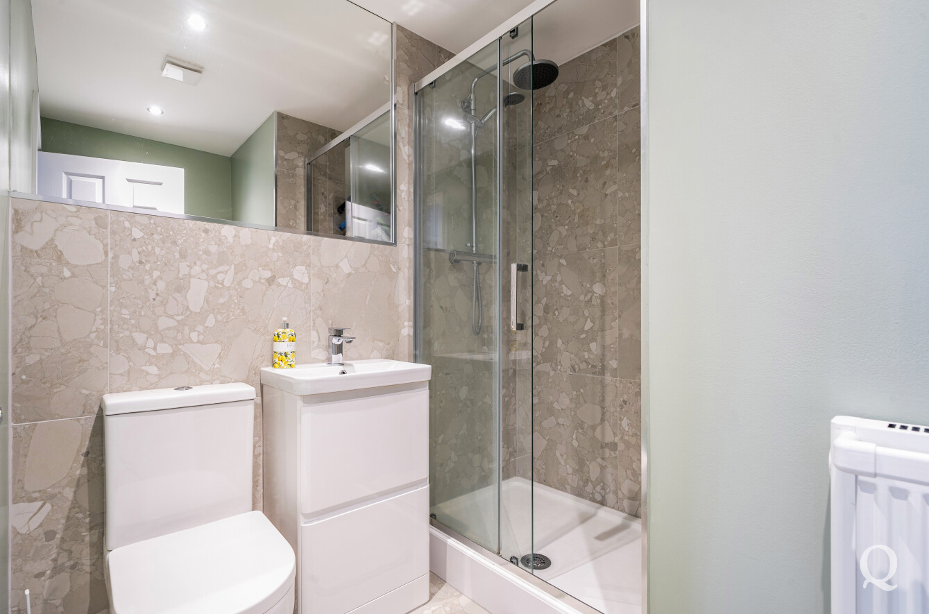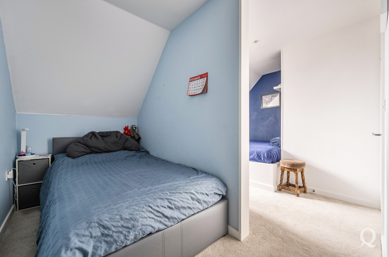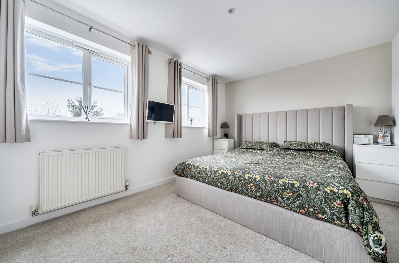 The contemporary kitchen offers ample storage and worktop space, and the ground floor also benefits from a convenient w/c. The first floor is home to the impressive dual-aspect master bedroom, complete with its own private en-suite shower room, alongside a further bedroom and the modern family bathroom. The top floor offers two additional well-proportioned bedrooms together with a useful dressing room, providing excellent storage and versatility.