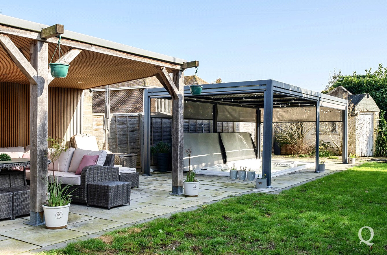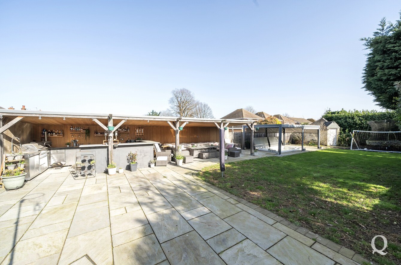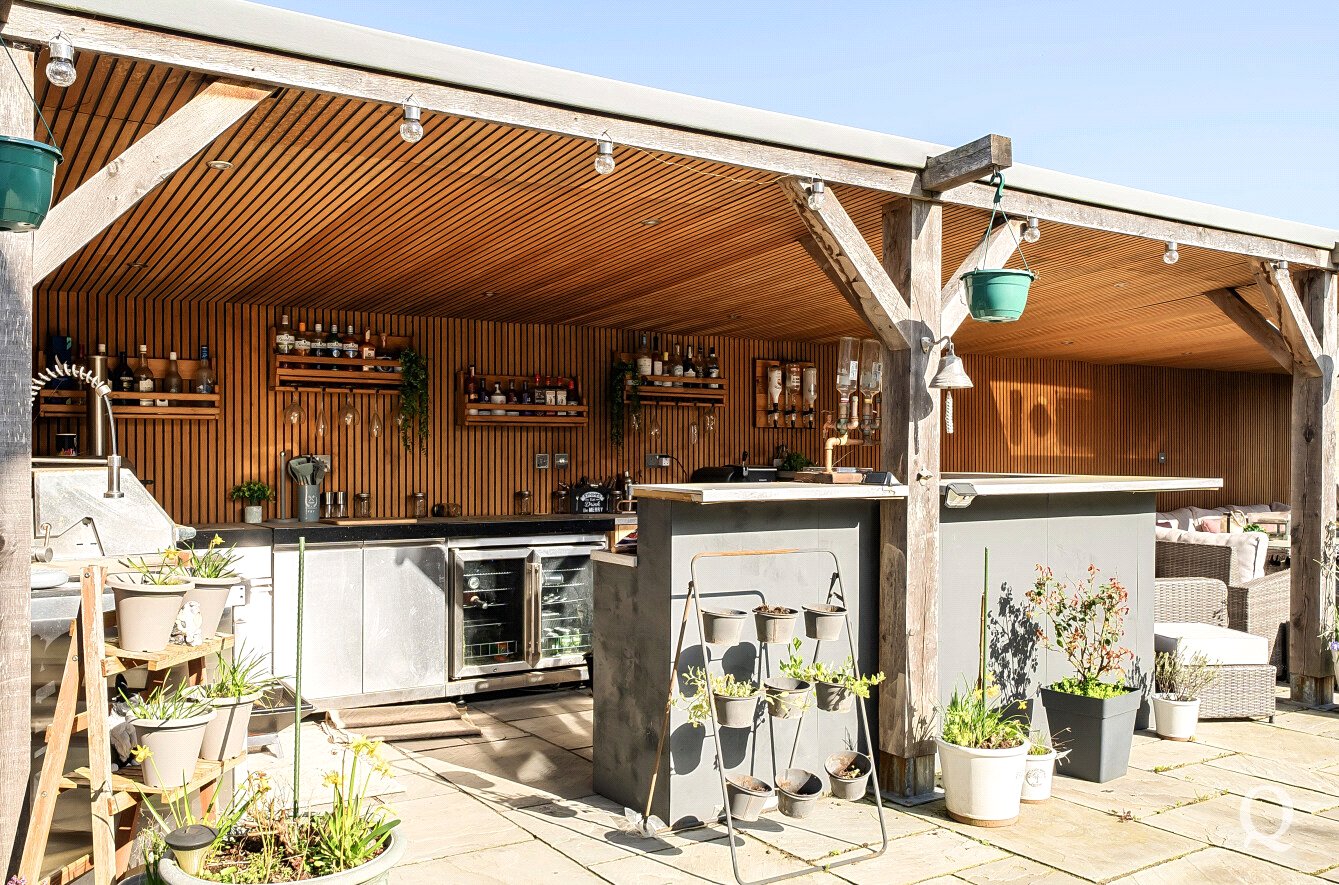 Externally, the property continues to impress with a beautifully landscaped rear garden designed with entertaining and relaxation in mind. The garden features an expansive patio area, an impressive outdoor kitchen, and a sunken swim spa, creating a superb outdoor entertaining space ideal for hosting family and friends.