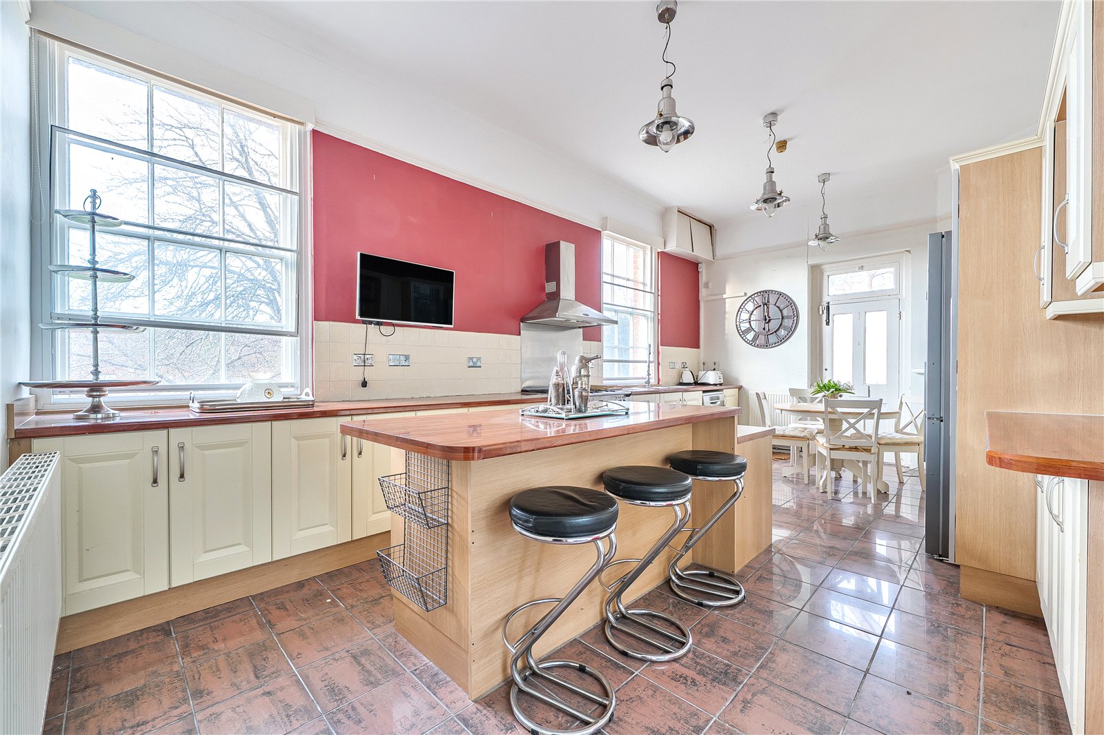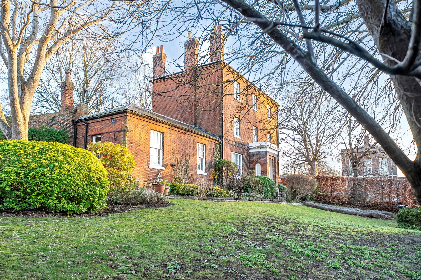 A large, modern kitchen has been thoughtfully designed to sit comfortably alongside the home’s historic charm, supported by a separate utility room. Further benefits to the ground floor include two downstairs cloakrooms, while a cellar provides excellent additional storage.