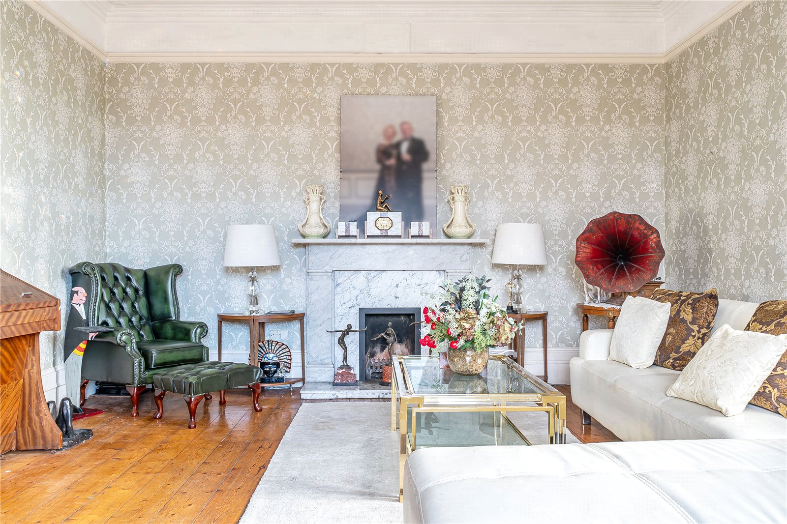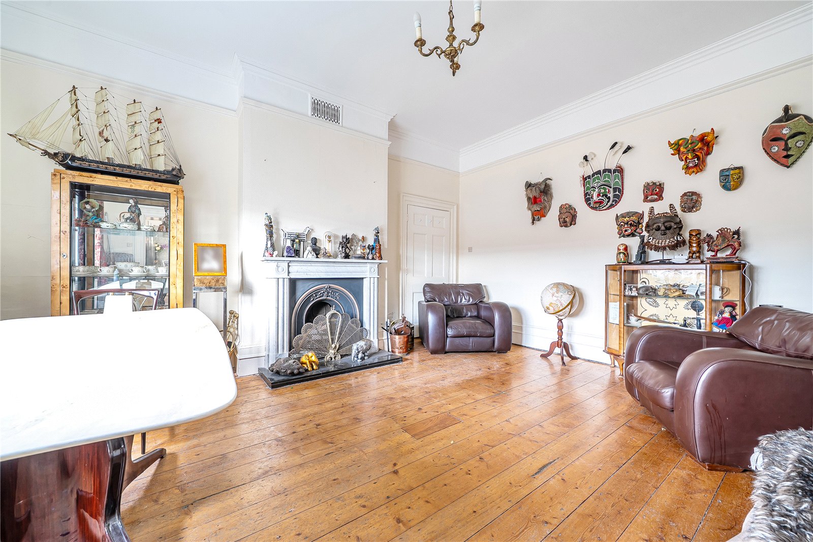 The property is arranged over three floors and is light and bright throughout, with well-proportioned rooms that showcase a wealth of original period features. Accommodation includes two generous reception rooms, providing flexible living and entertaining space, alongside a cosy conservatory, ideal as a quiet retreat or additional reception space.